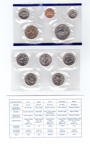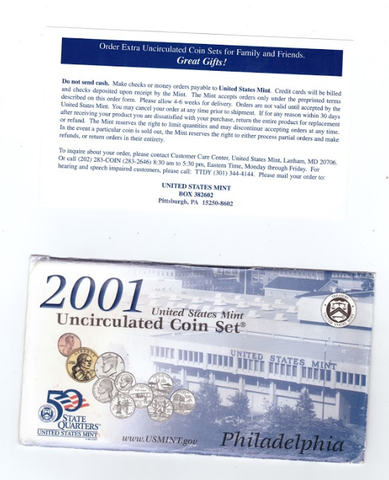 Годовой набор США в родной запайке 2001 год двор Р + 5 монет Штаты