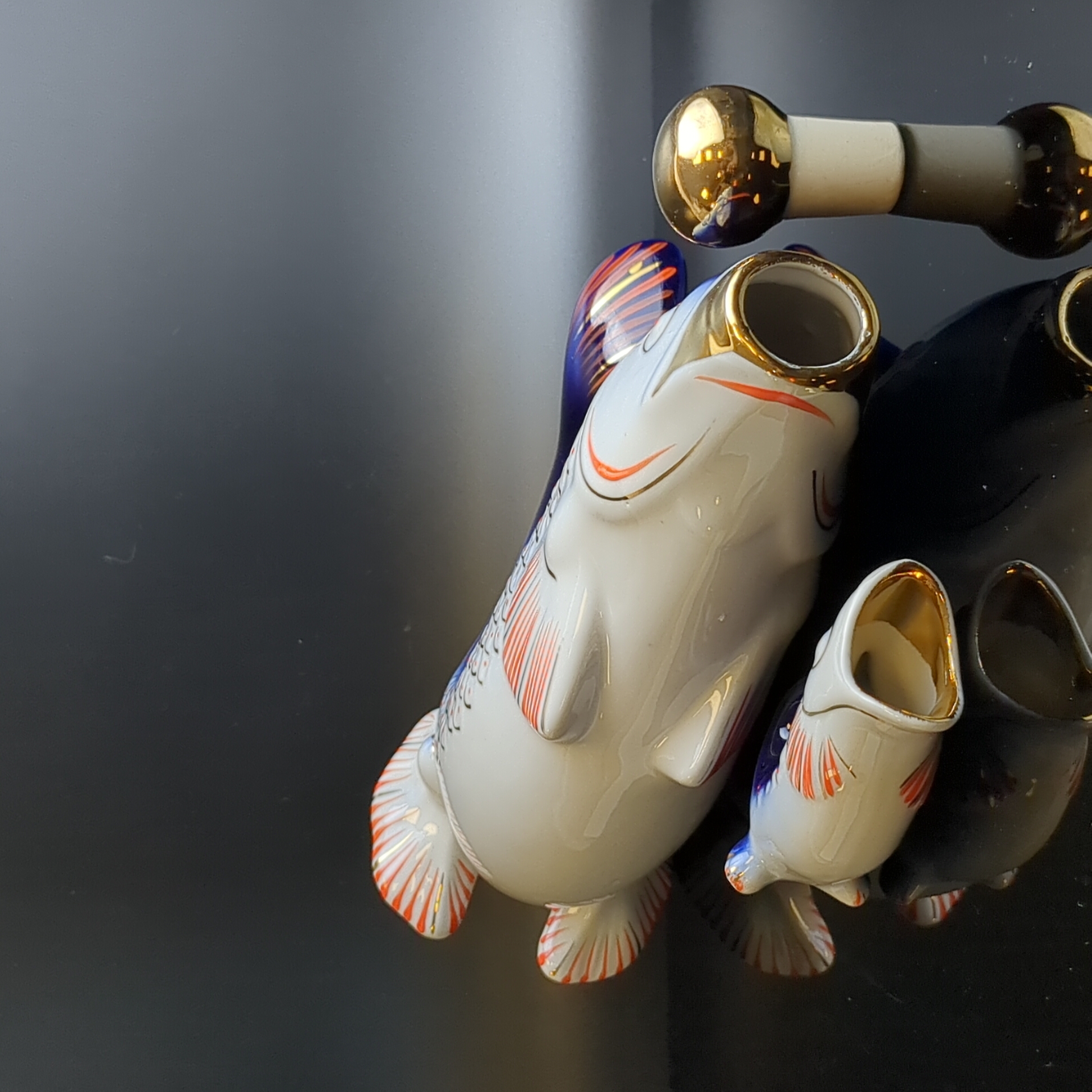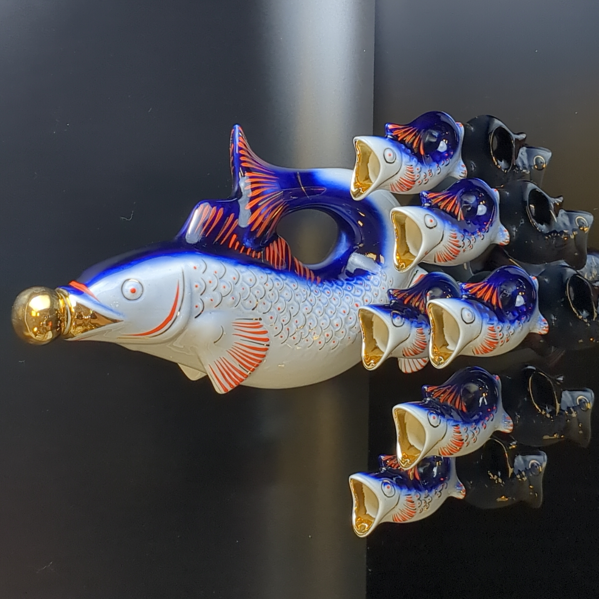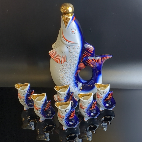 Штоф, графин фарфоровый Рыбки с 6 рюмками, стопками, комплект, клеймо ГФЗ Городница завод, винтаж, СССР 1970-1990 гг. Высота графина - 25 см. Состояние на фото. Прекрасный набор на подарок или в личную Коллекцию