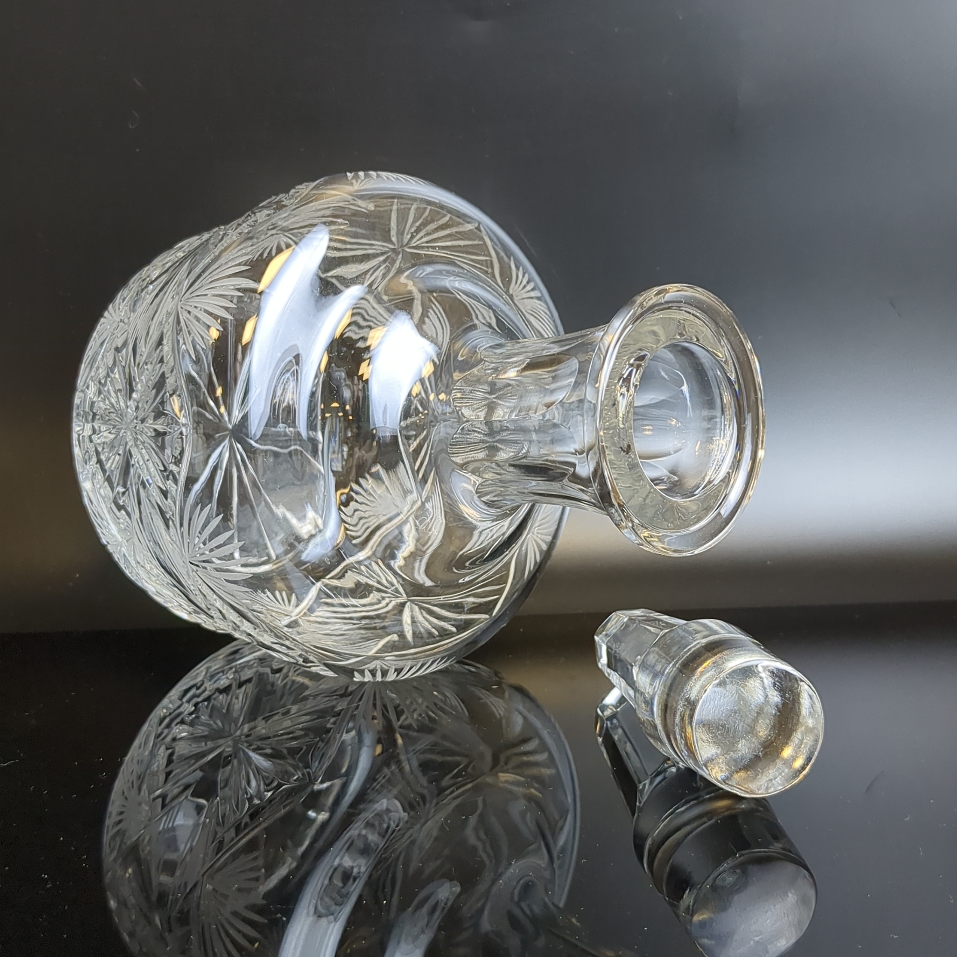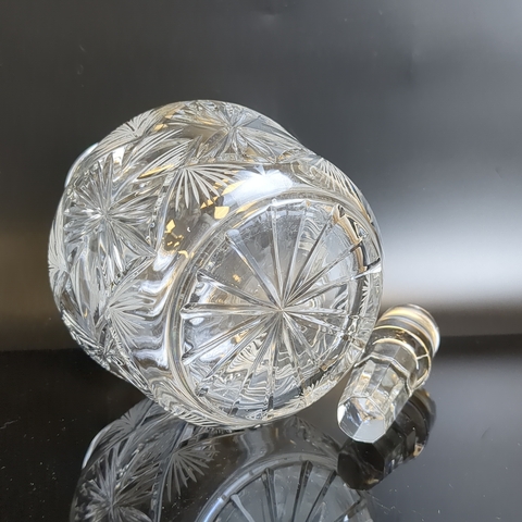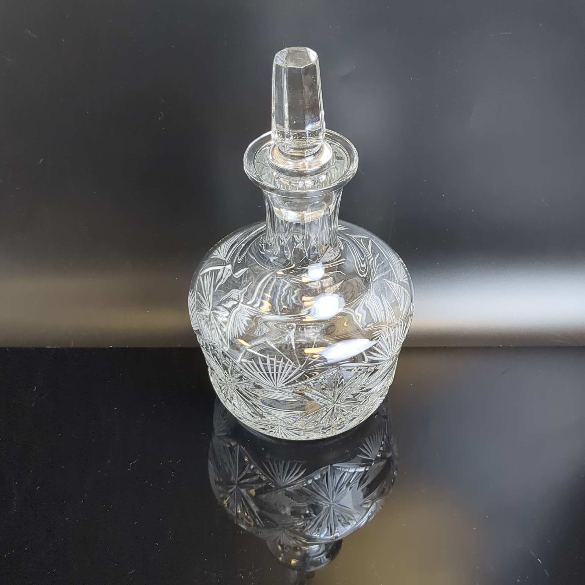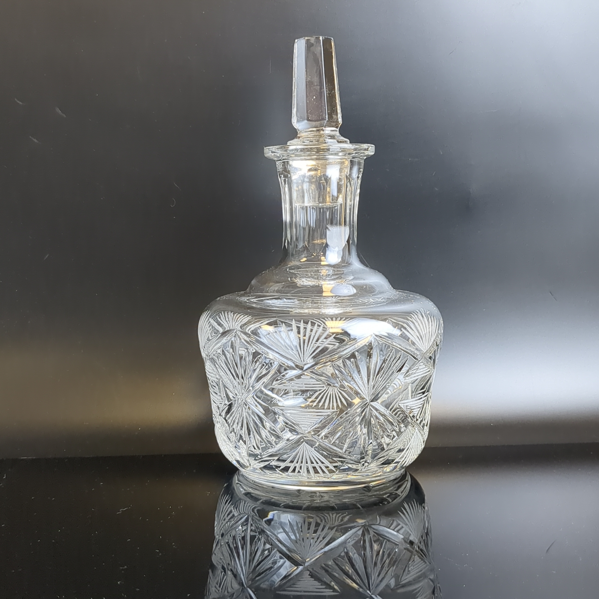 Графин, штоф хрустальный для крепких напитков, алмазная грань, геометрический резной орнамент, высота -20.5 см, (объём-? мл), винтаж СССР 1970-1990 гг.