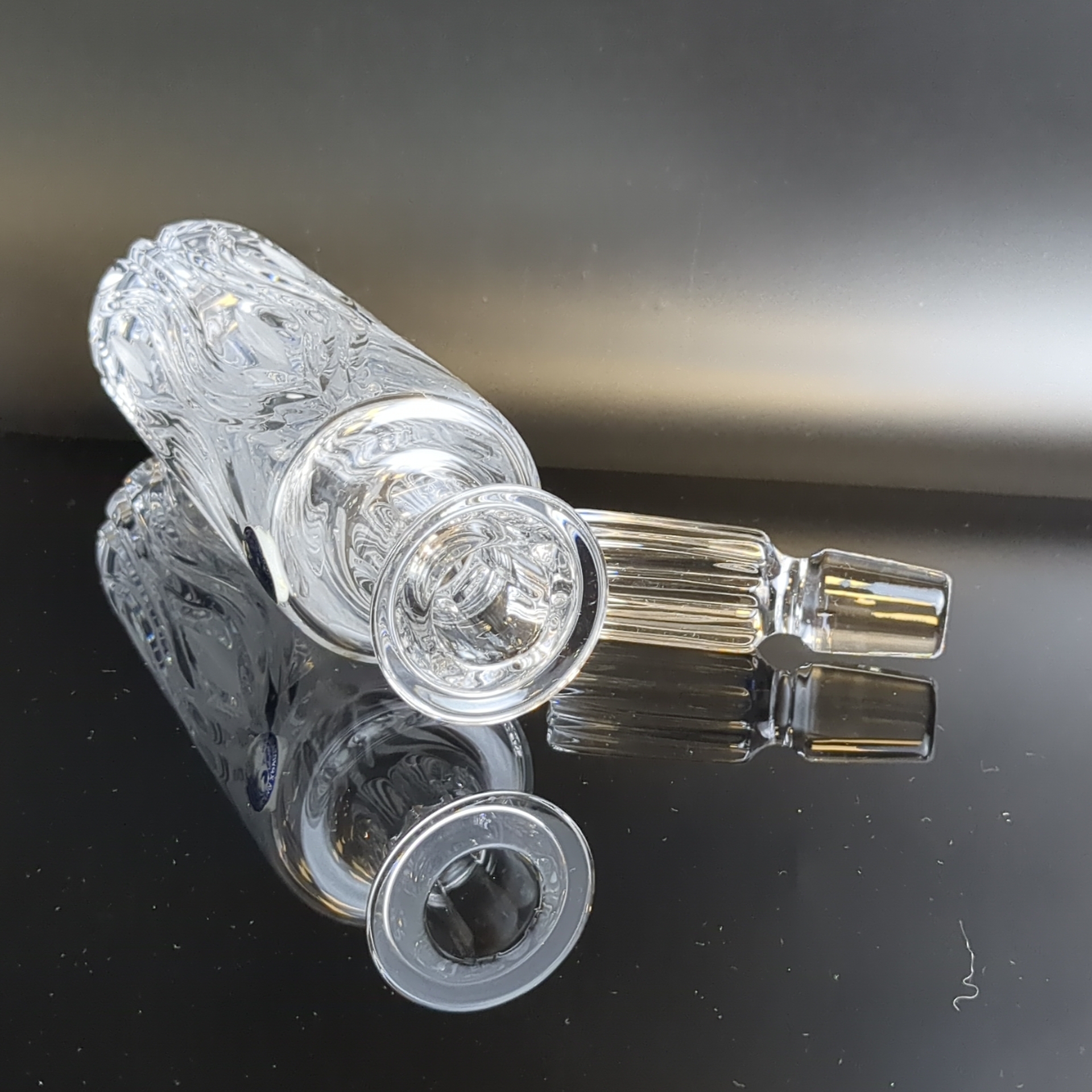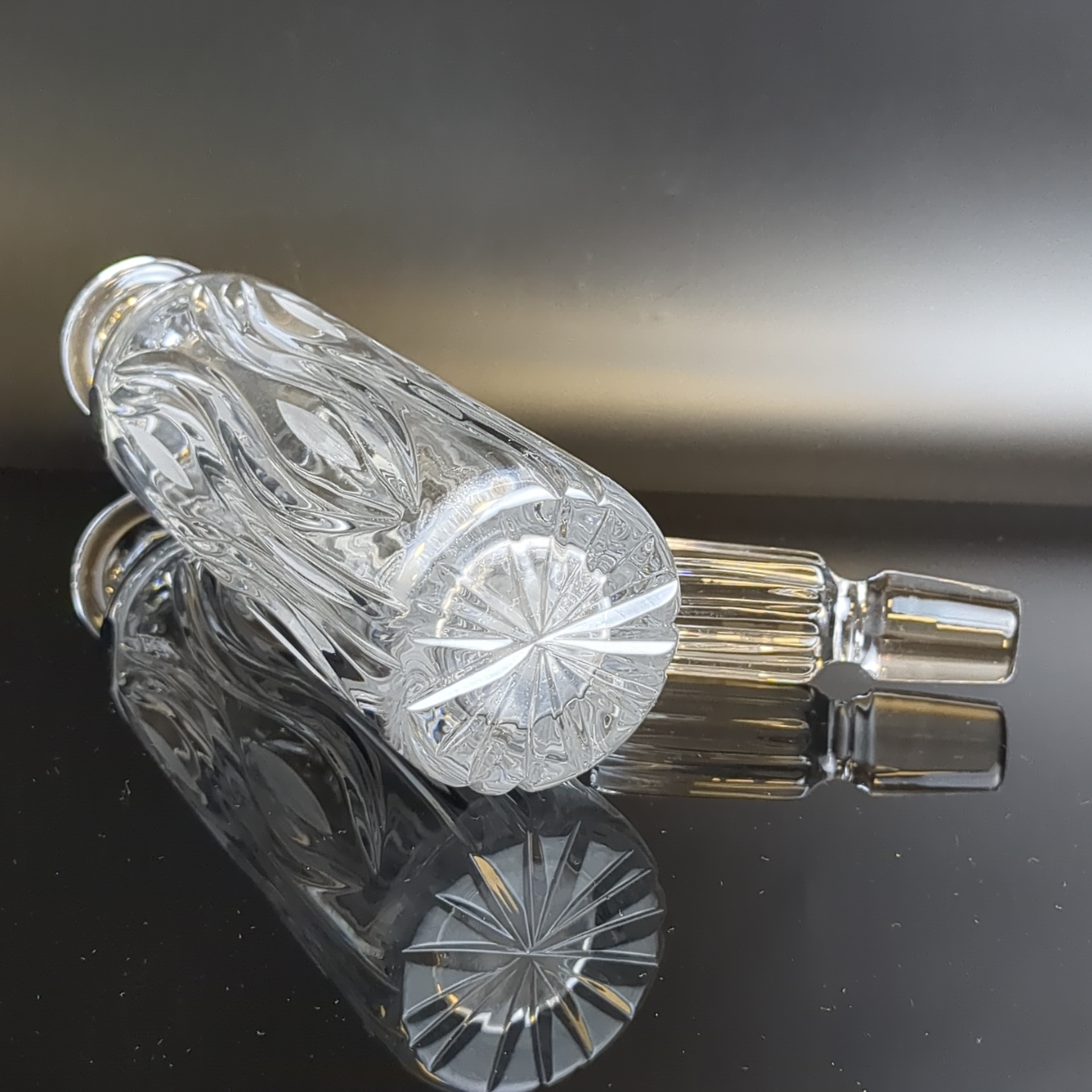 Графин хрустальный с изящными алмазными гранями, (объём- ? мл), 27 см, винтажный стиль. ДХЗ. Состояние на фото.