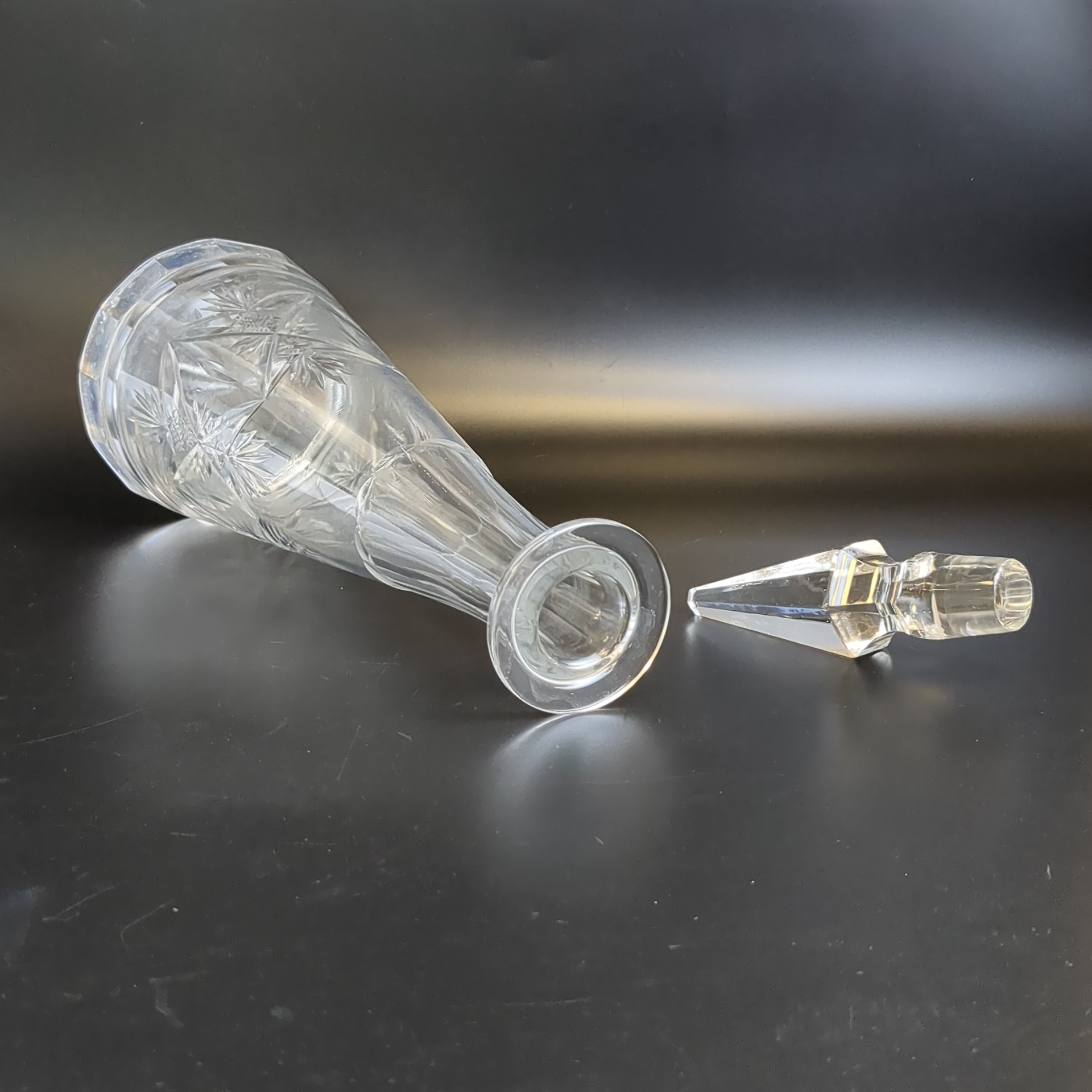 Погрузитесь в атмосферу изысканности и стиля советской эпохи! Благодаря графину из качественного хрусталя вы добавите нотки элегантности к вашим напиткам. Алмазная грань преломляет свет, создавая завораживающий блеск, а уникальный геометрический узор подчеркнёт ваш безупречный вкус. Идеальное дополнение к сервировке стола и прекрасный подарок ценителям настоящего винтажа СССР 1970–1990-х годов.