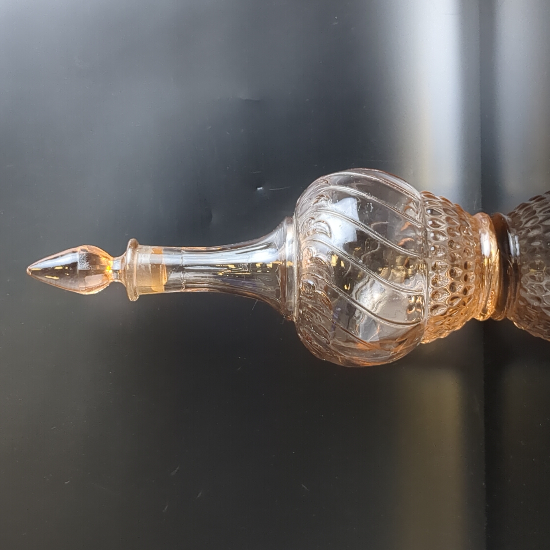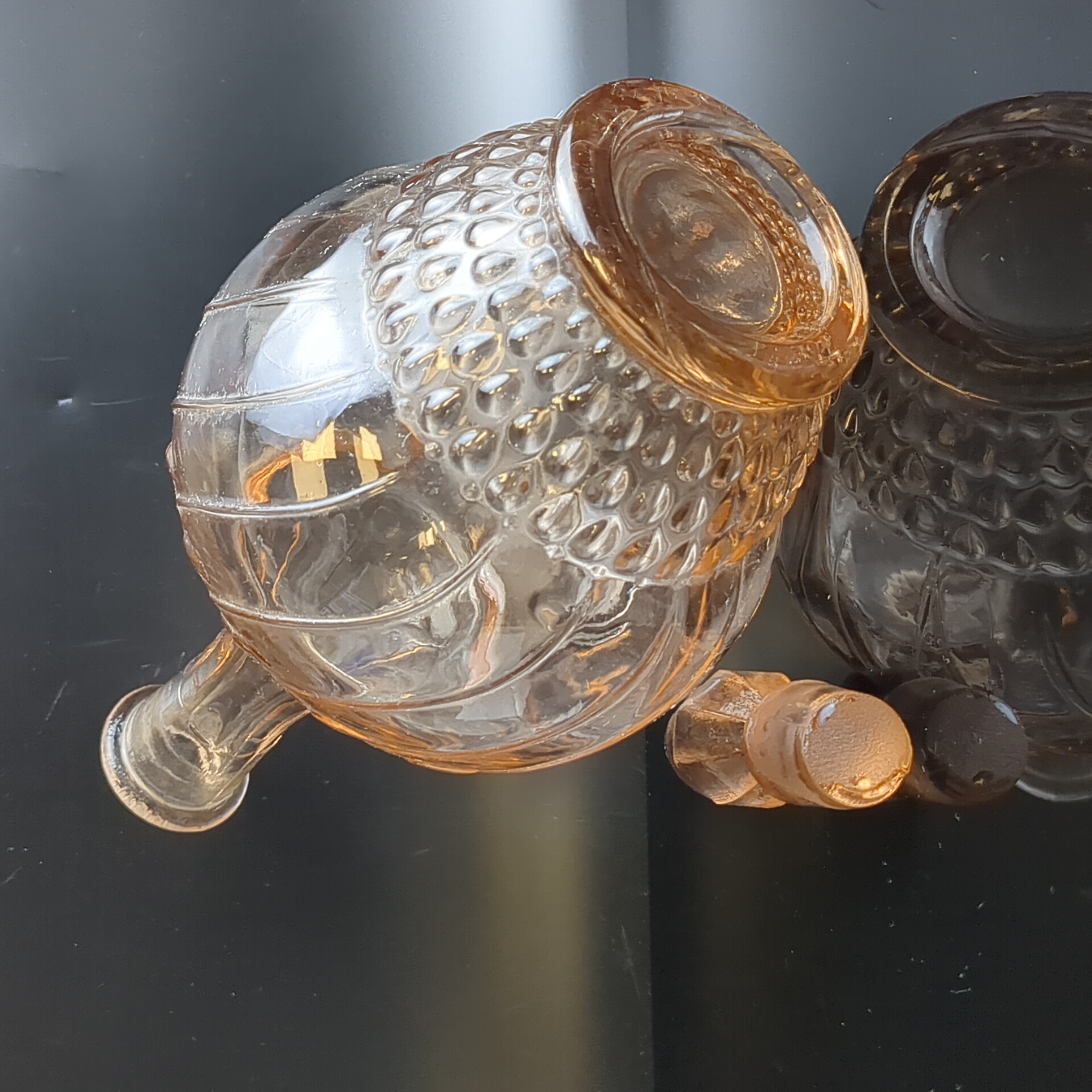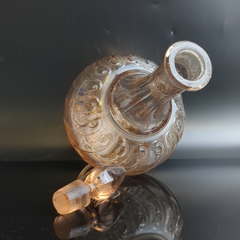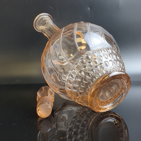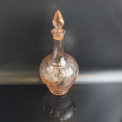 Графин розовое цветное стекло, с пробкой, изящный рисунок, высота -26 см, винтаж СССР 1970-1990 гг. Состояние на фото