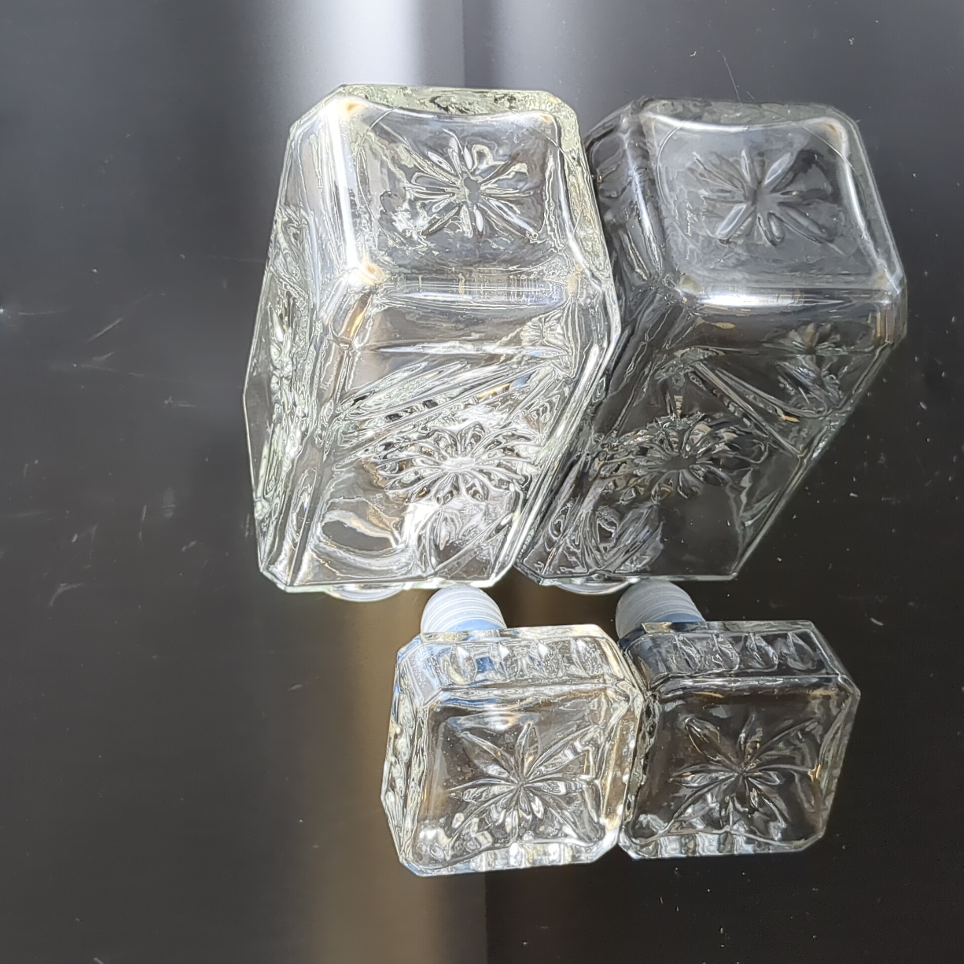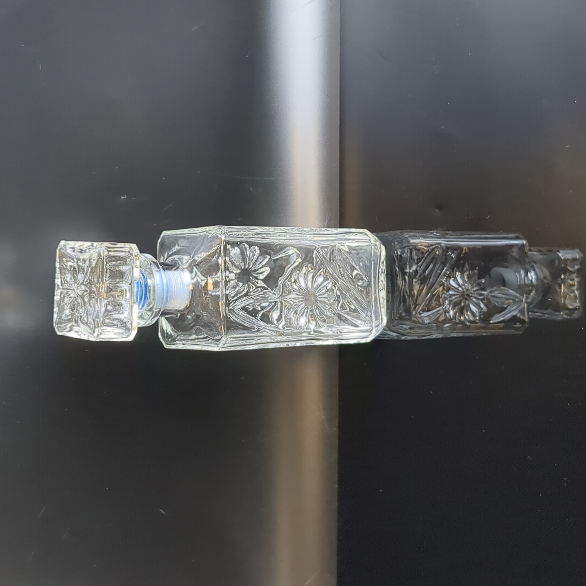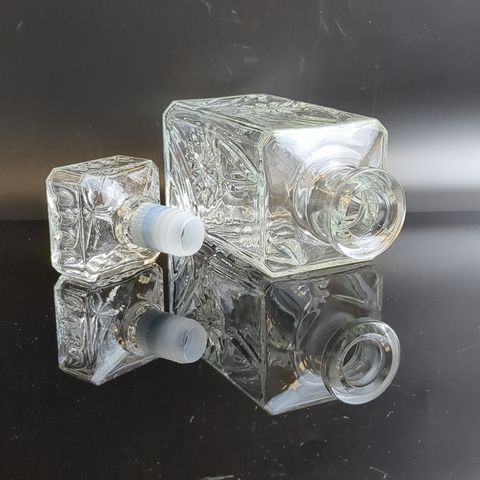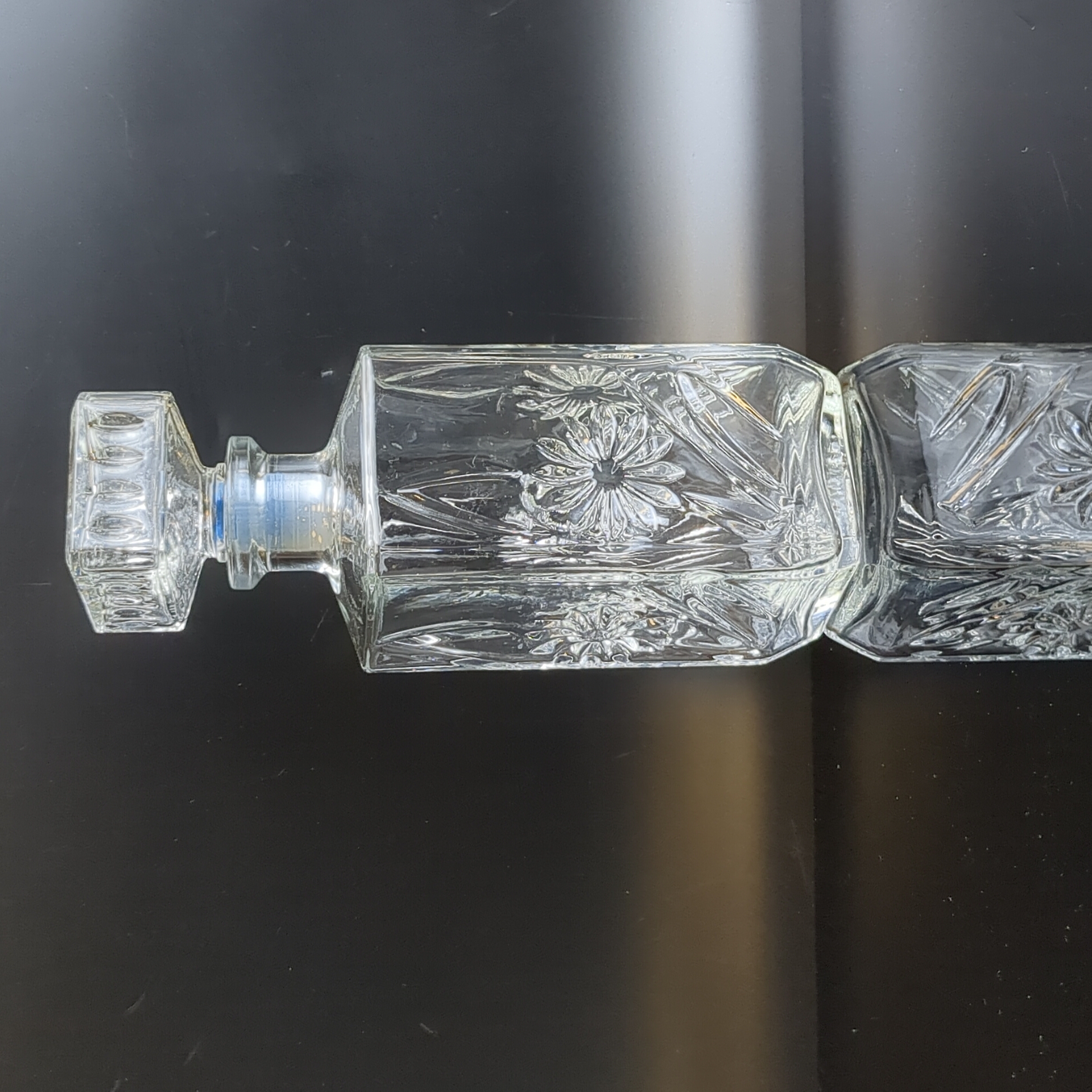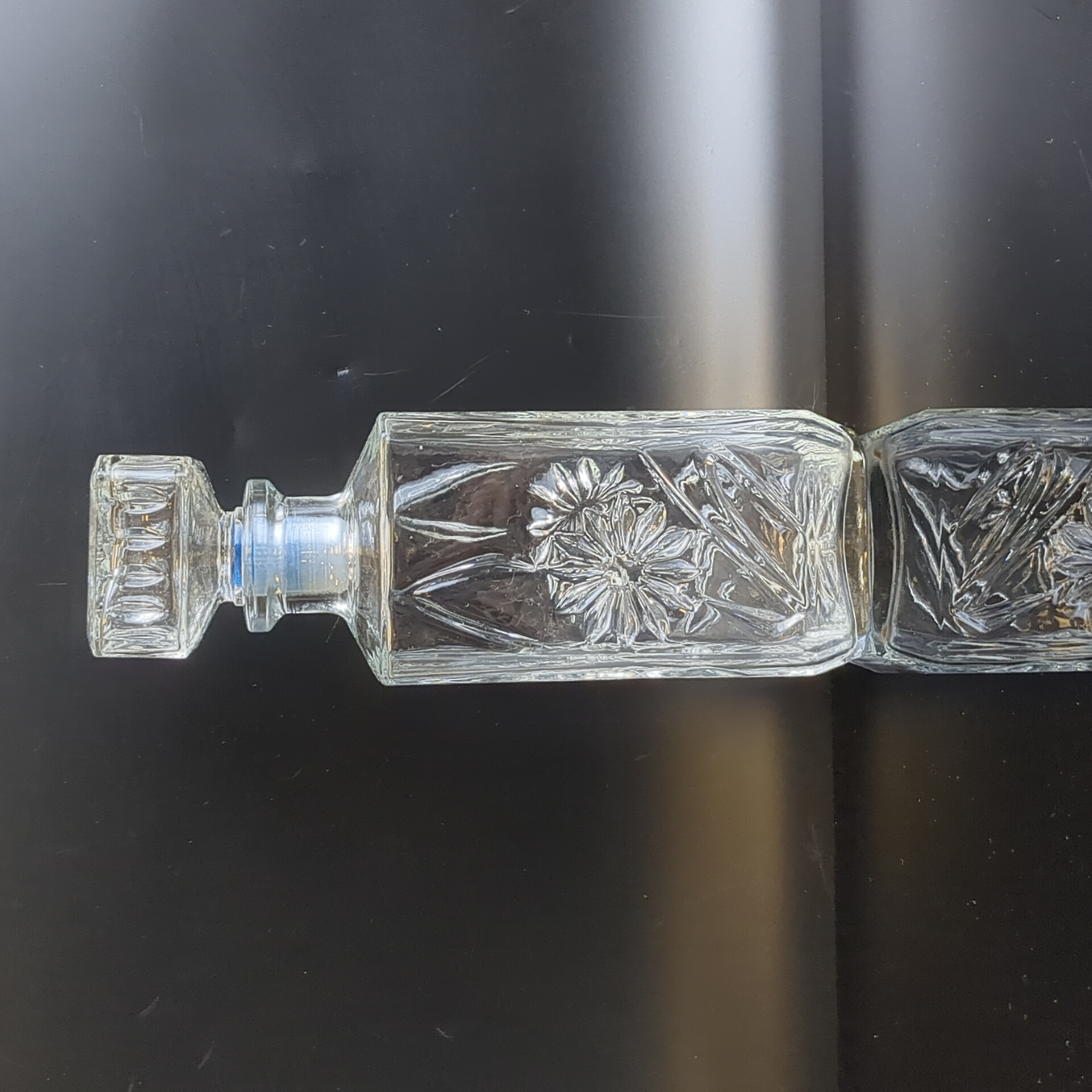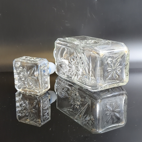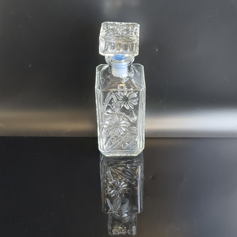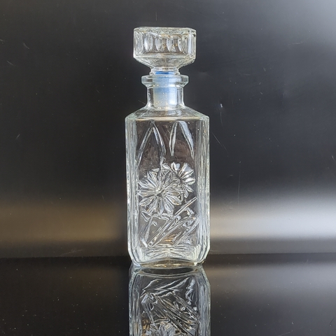 Графин с резным декором цветы, стекло, высота- 18.5 см, винтаж СССР 1970-1990 гг. Состояние на фото