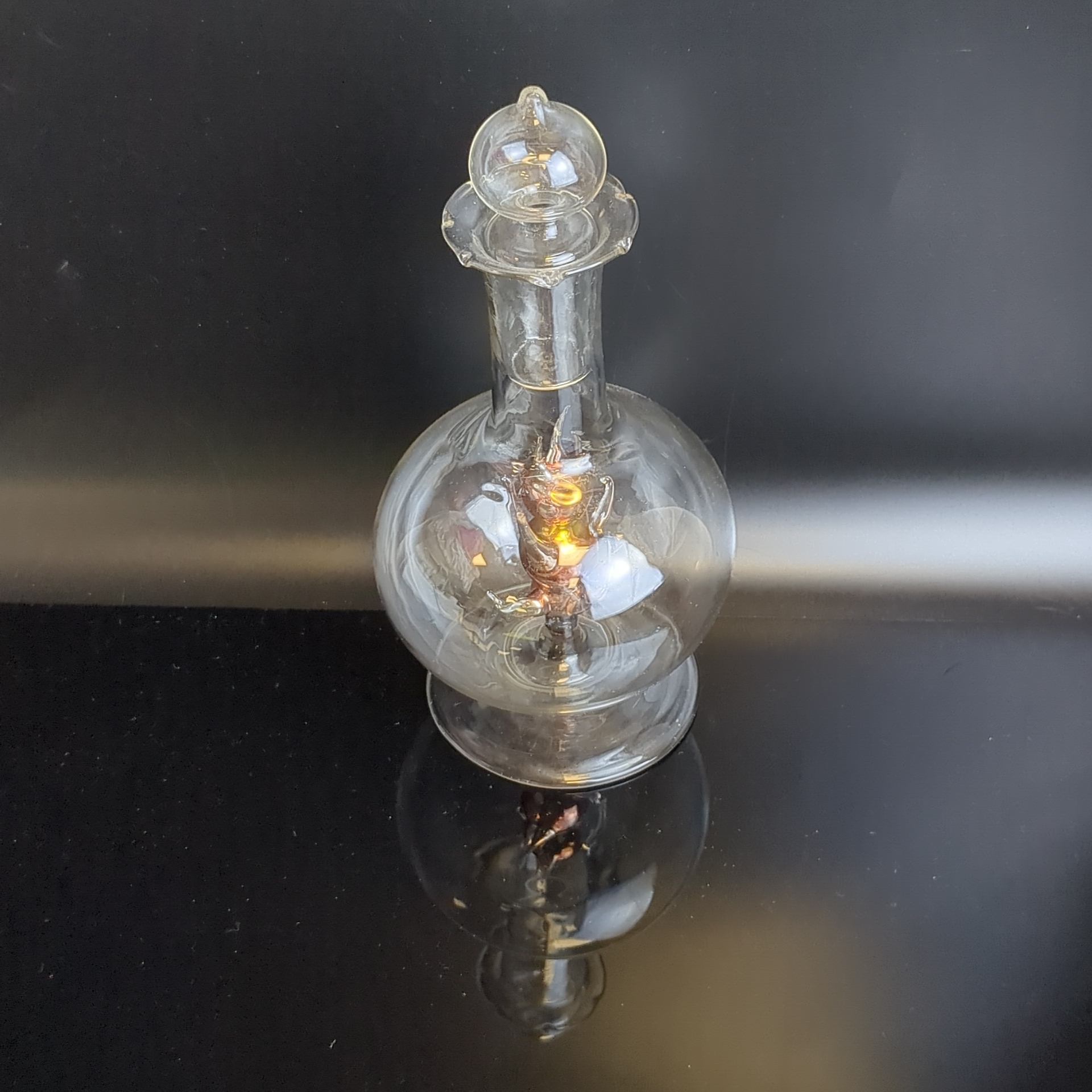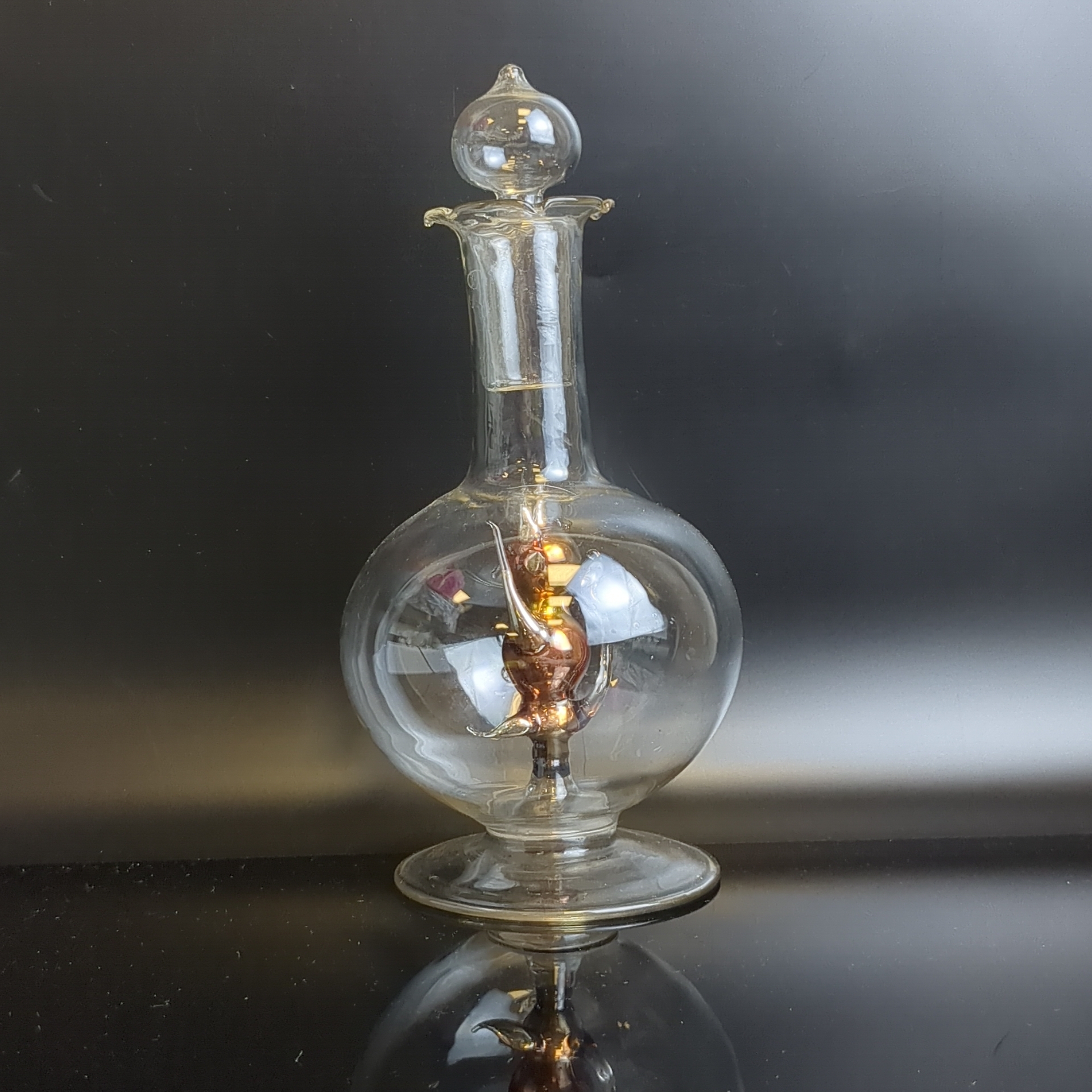 Графин, штоф с чёртиком внутри гутная техника, выдувная техника стекло, высота - 21 см, винтаж времён СССР, 1950-1980 гг. Состояние на фото