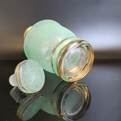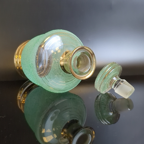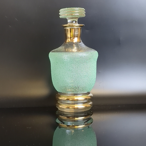Графин штоф с пробкой насыпное зеленое стекло, высота -19.5 см, 500 мл., винтаж СССР 1970- 1990 гг. Присутствуют следы использования - состояние на фото.