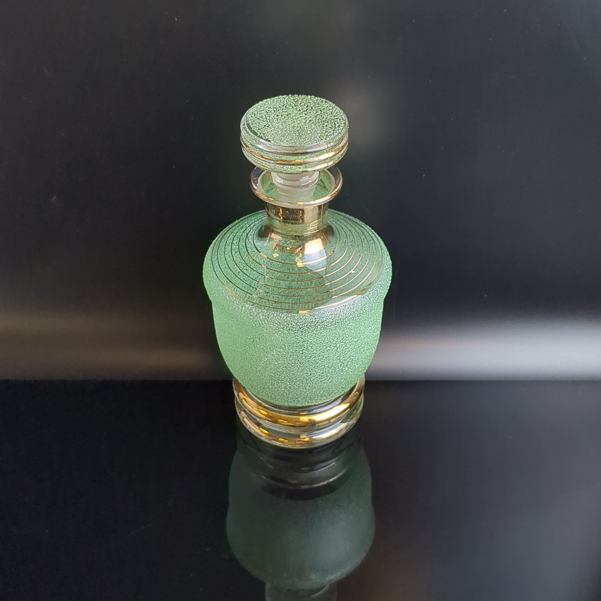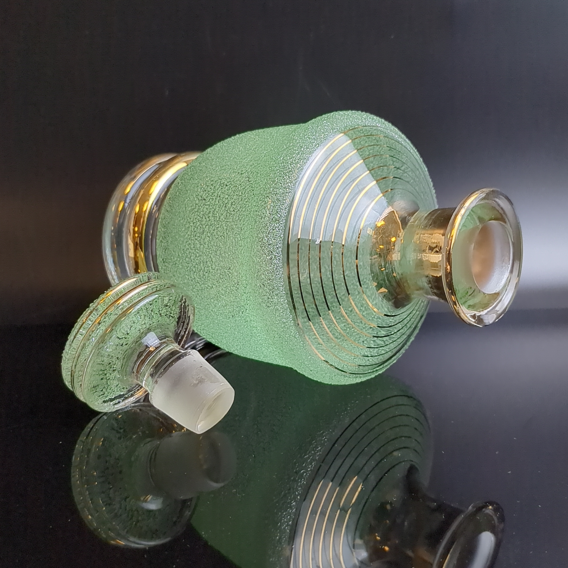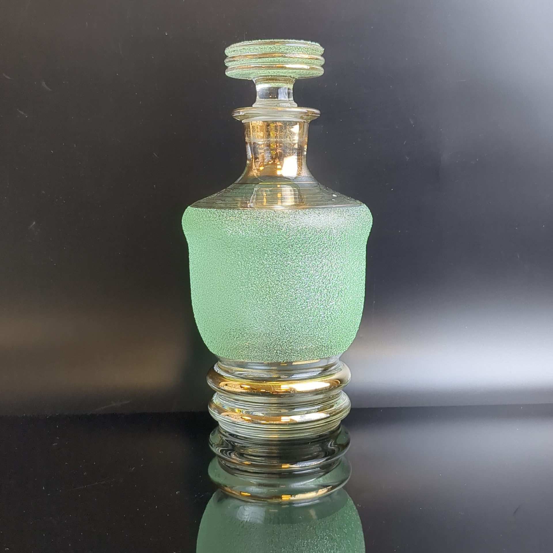 Графин штоф с пробкой насыпное зеленое стекло, 19.5 см, 500 мл., винтаж СССР 1970- 1990 гг. Состояние на фото