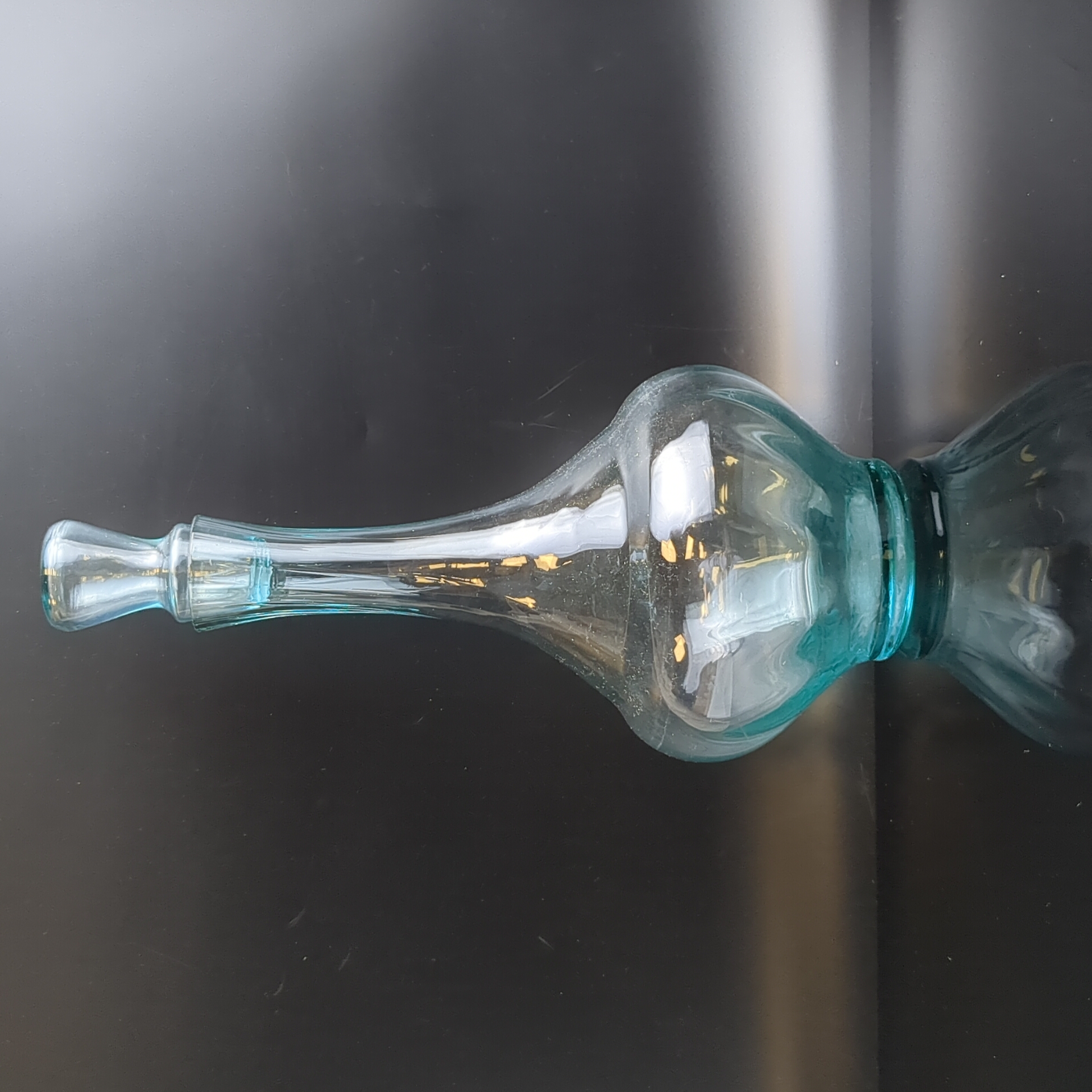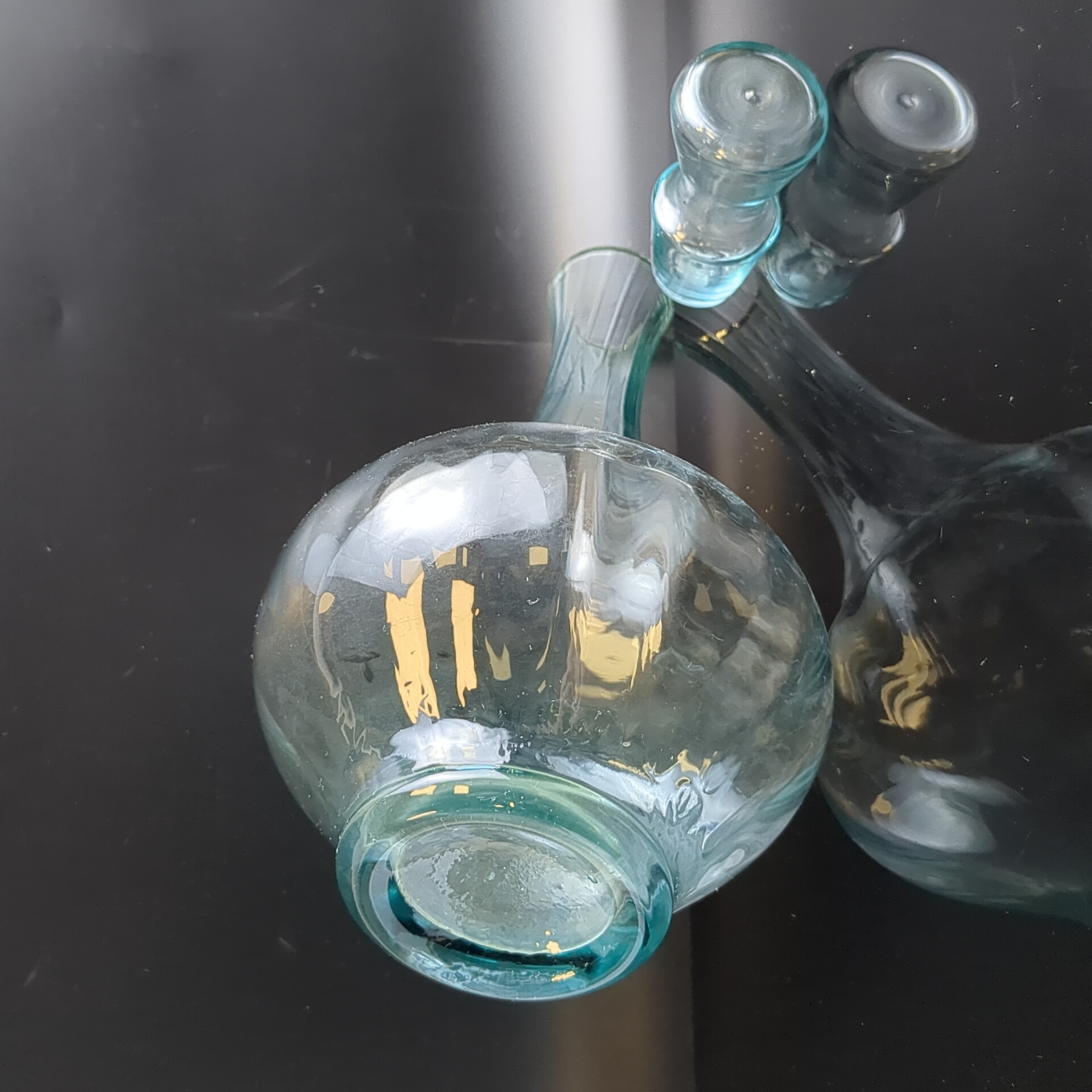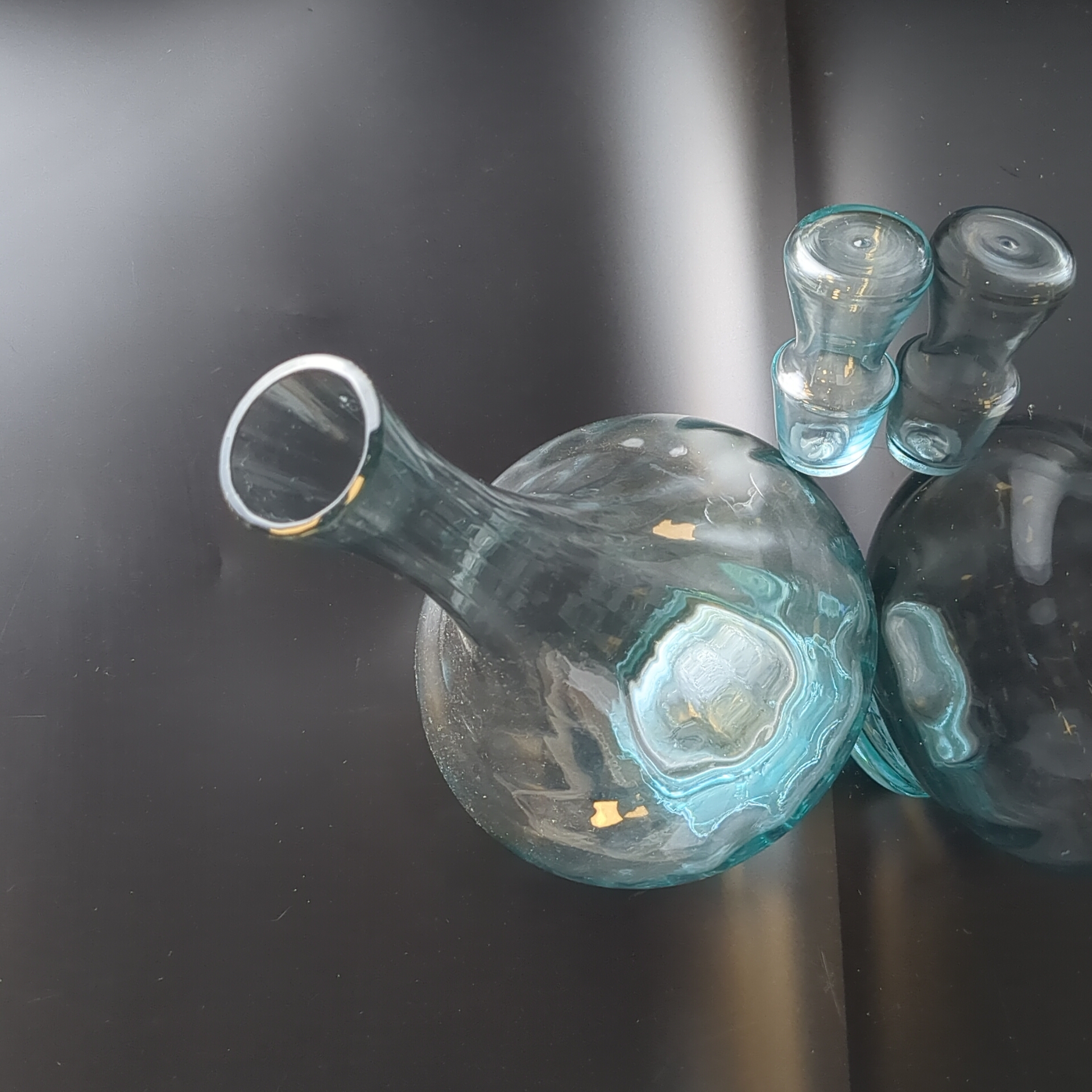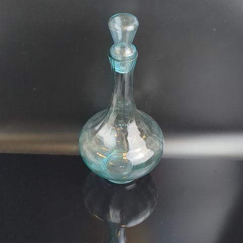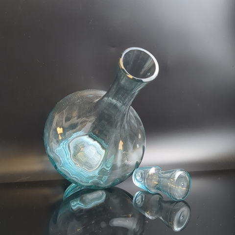 Графин стеклянный для напитков с пробкой синее цветное стекло, высота - 25.5 см, винтаж СССР 1970-1990 гг. Состояние на фото