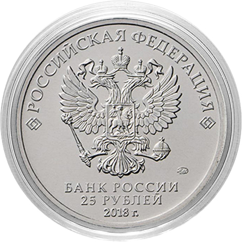 Сувенирная монета номиналом 25 рублей с выгравированным изображением.