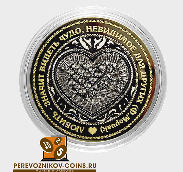Сувенирная монета (Сердце и надпись "Любить - значит видеть чудо, невидимое для других")