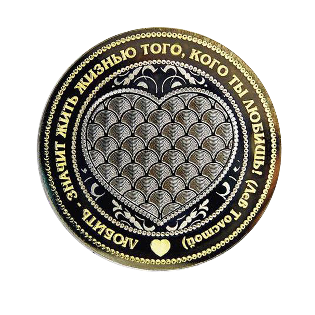 Сувенирная монета (Сердце и надпись "Любить - значит жить жизнью того, кого ты любишь)"