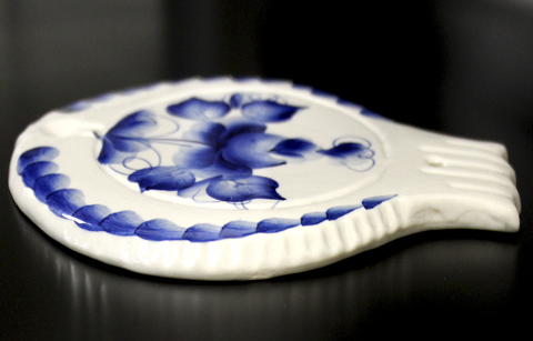 На разделочной доске из Гжели, выполненной вручную с клеймом ГВЗ и изготовленной из фарфора, можно сервировать сыры, нарезать продукты, подавать горячее или использовать как элемент декора.