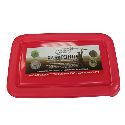 Контейнер с пропиткой нано-составом для наилучшей сохранности находок. Помогает копаным монетам и другим металлическим предметам благополучно сохраняться длительное время без изменений после извлечения из земли/воды. Состав безопасен для кожи рук.