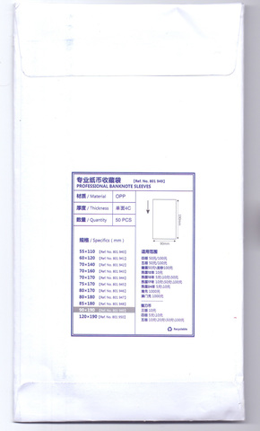 Холдеры для банкнот 90х190мм №8 50 шт в упаковке.
