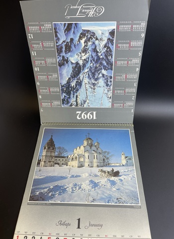 Храмы России. Настенный перекидной календарь. 1992 год. Размеры 32 х 28 см