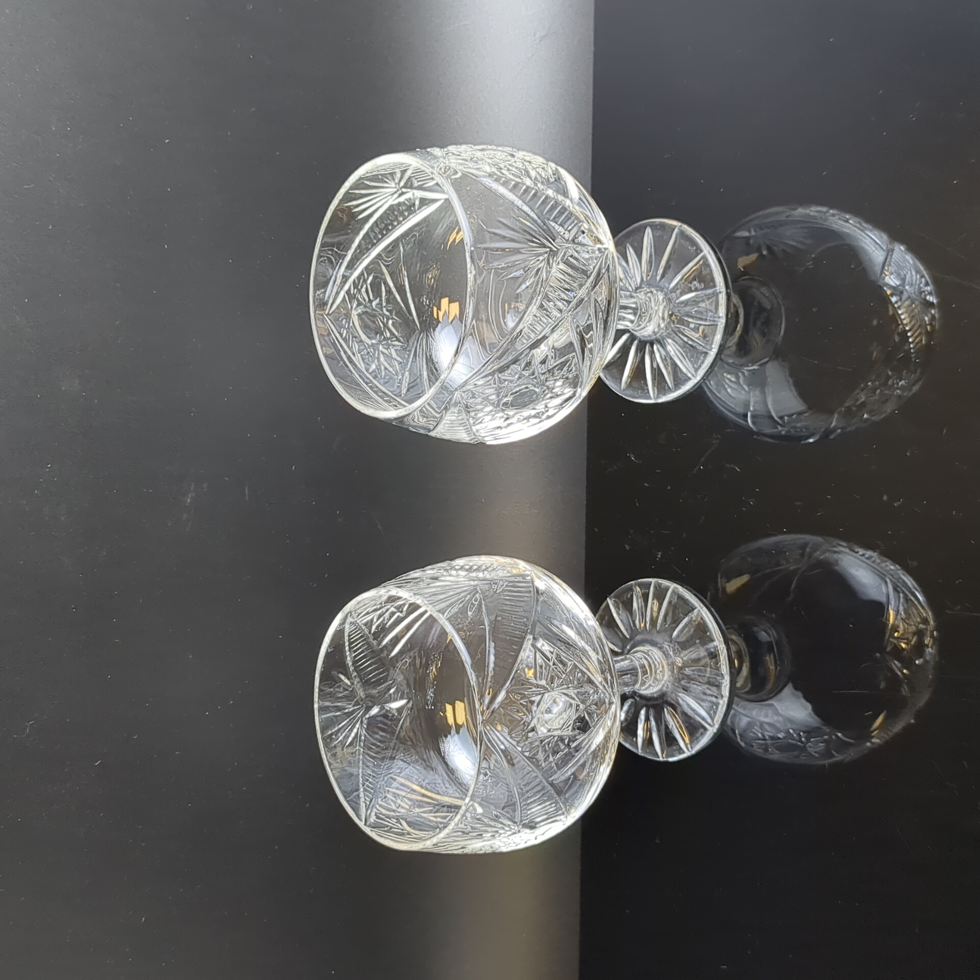Хрустальные бокалы для коньяка 2 штуки - винтажная роскошь в вашем доме. Диаметр - 29.5 см, высота - 6.5 см. Состояние и комплектация на фото.