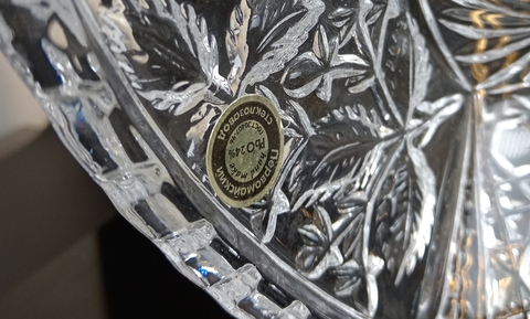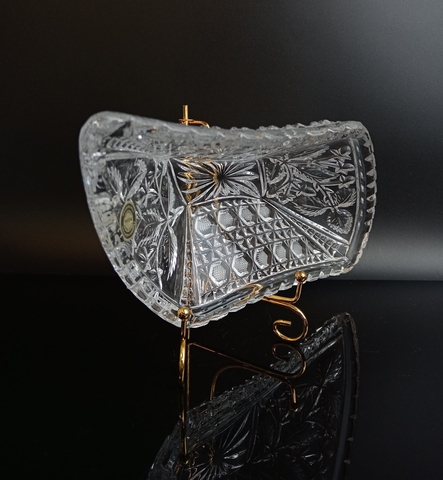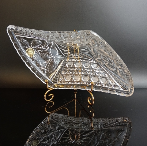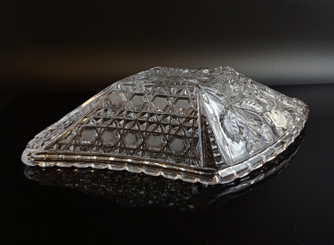 Хрустальная антуражная конфетница "Листья малины", алмазная грань, шикарный узор, винтаж СССР 1970-1990 гг. Высота - 6 см, длина - 26.5 см. Присутствуют следы использования - состояние на фото