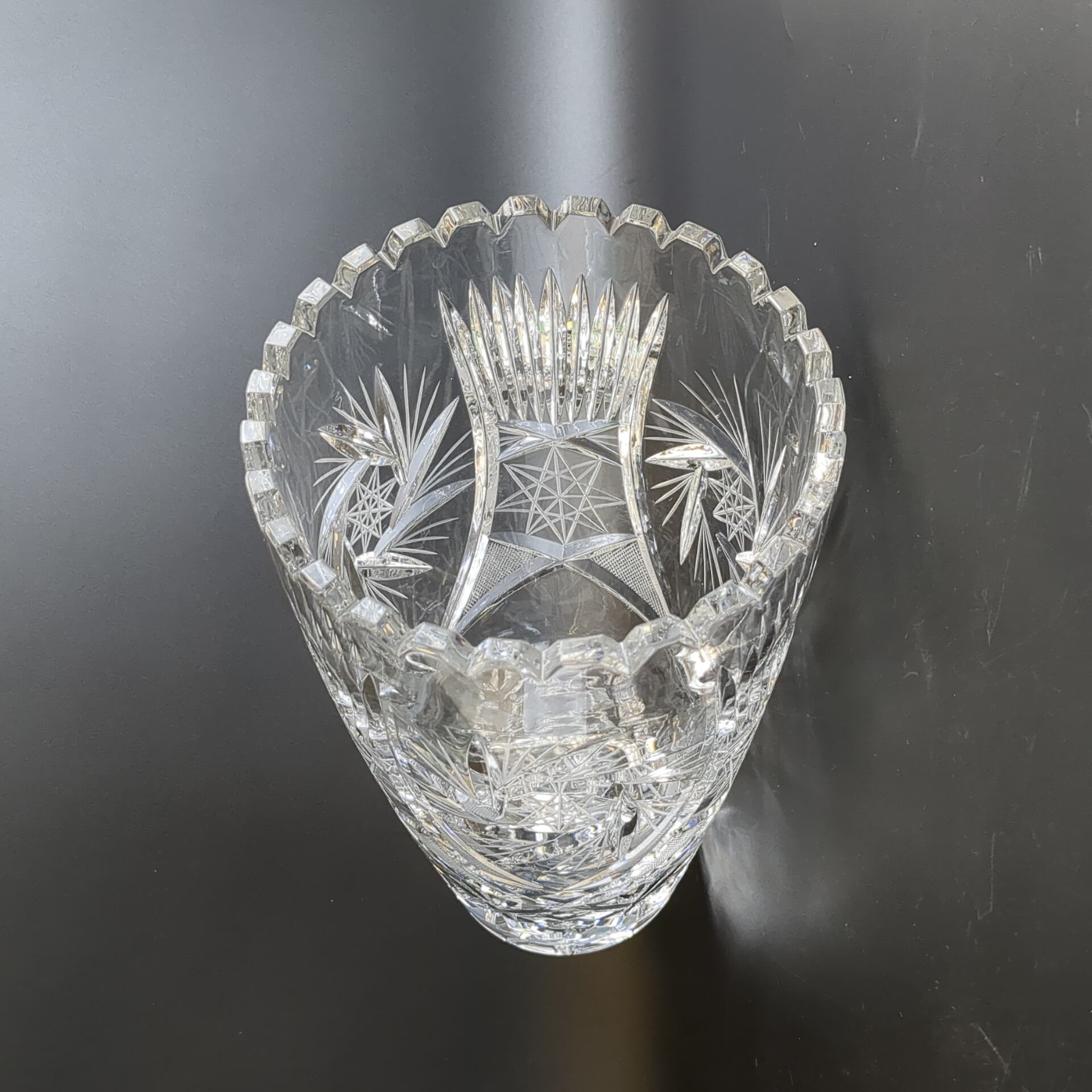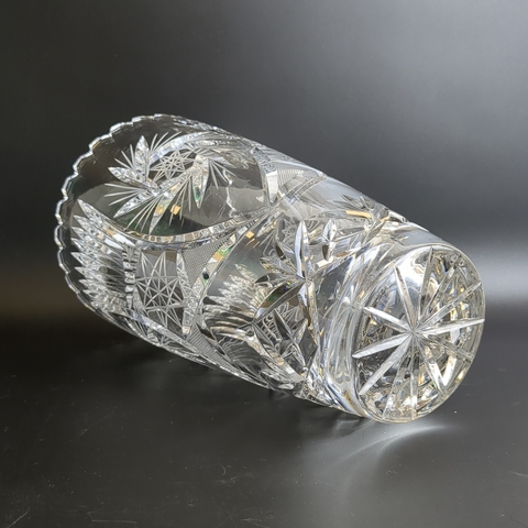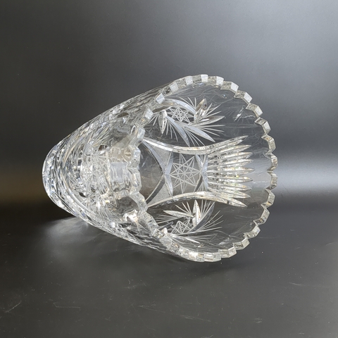 Большая хрустальная ваза для цветов из толстого хрусталя - винтажная роскошь в вашем доме. Диаметр верха - 14.5. см, высота - 25 см. Состояние на фото.