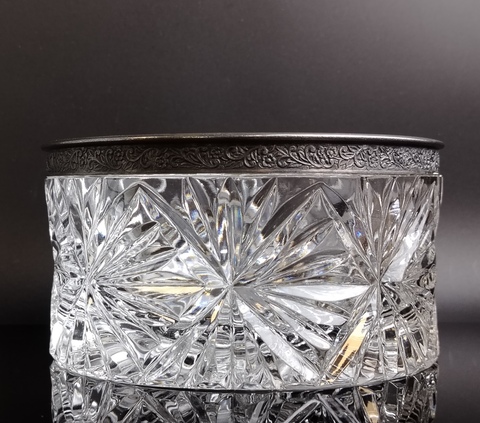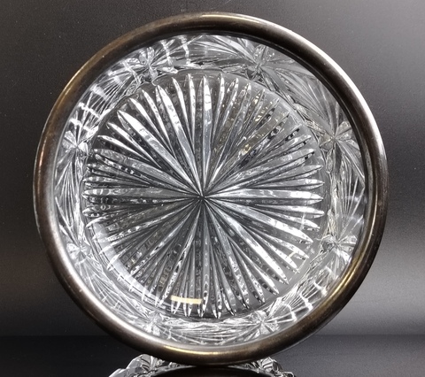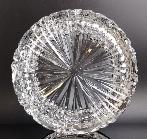 Хрустальная салатница, ваза для фруктов с ободком, геометрический декор, алмазная грань, СССР винтаж 1970-1990 гг. Состояние на фото - следы использования