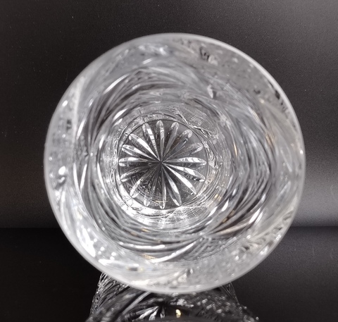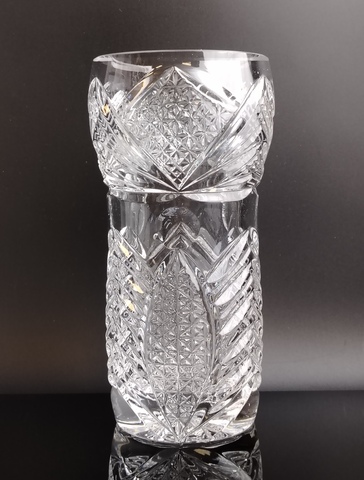 Хрустальная ваза для цветов, алмазная грань, 19 см, геометрический орнамент, узор, винтаж СССР 1970-1990 гг. Присутствуют следы использования - состояние на фото