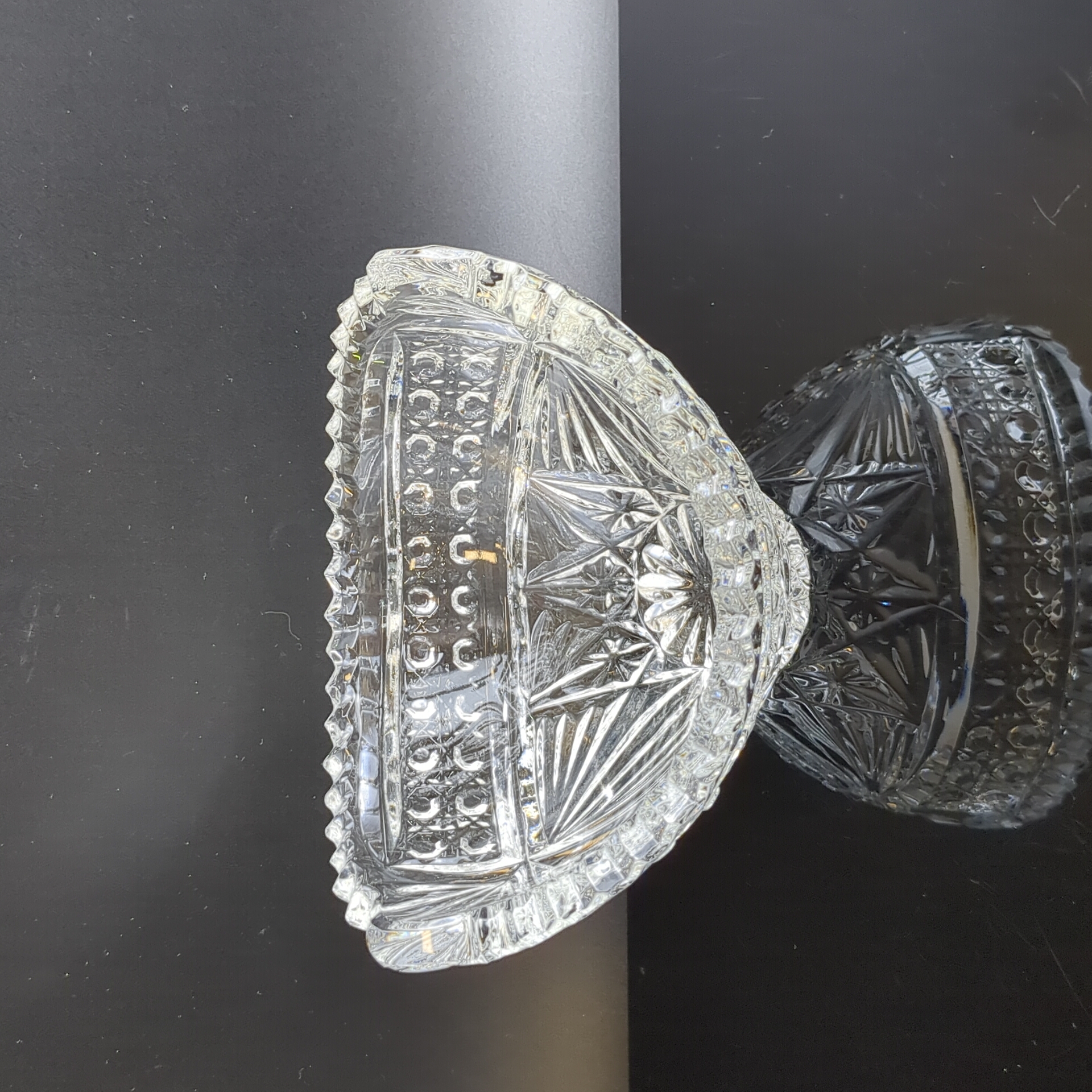 Хрустальная ваза для сервировки конфет - винтажная роскошь в вашем доме. Длина - 13 см, высота - 10 см. Состояние на фото.