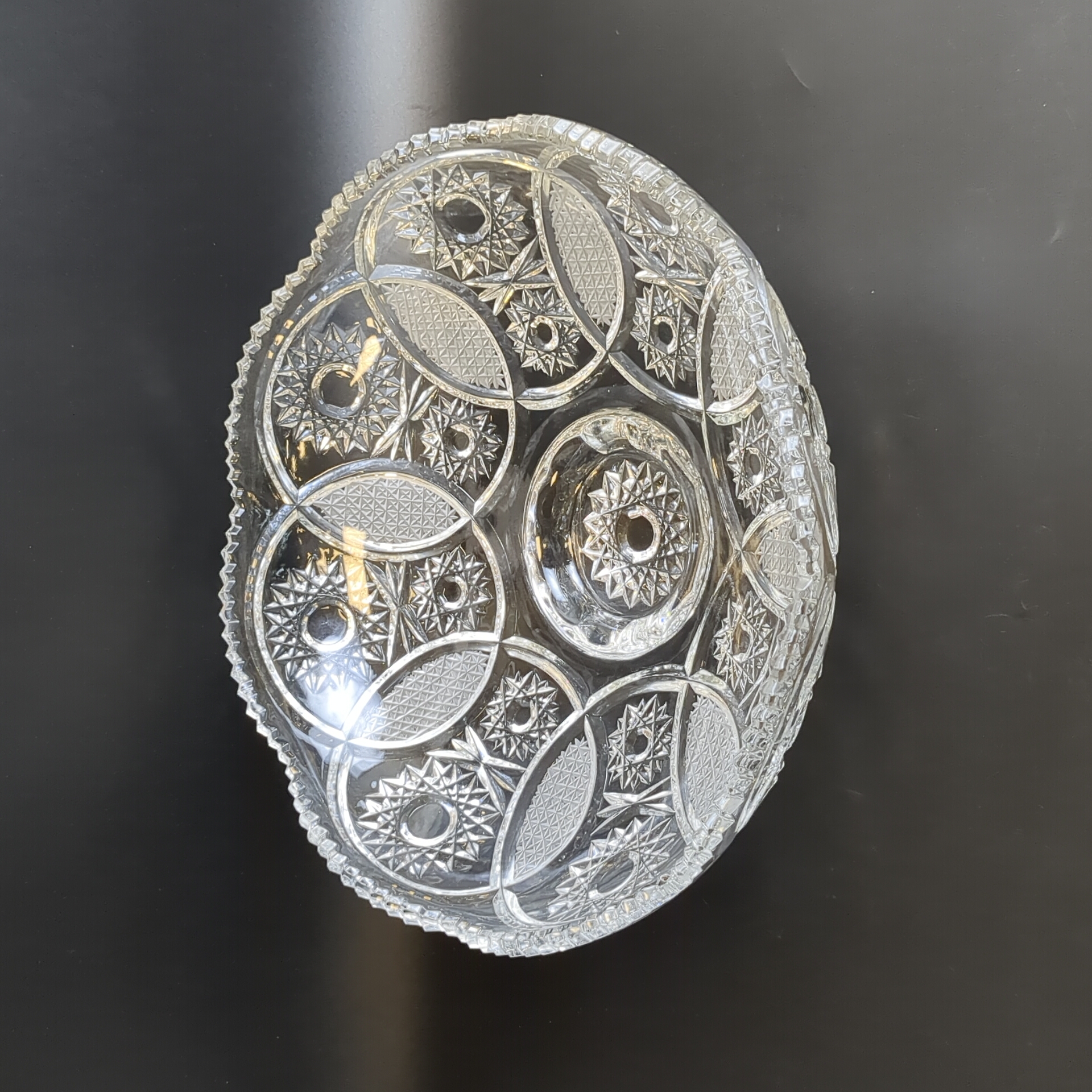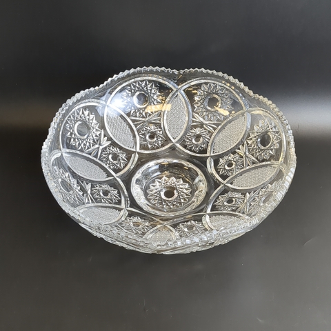 Хрустальная ваза конфетница - Югославия - Алмазная грань. Высота 10 см., диаметр 28 см.