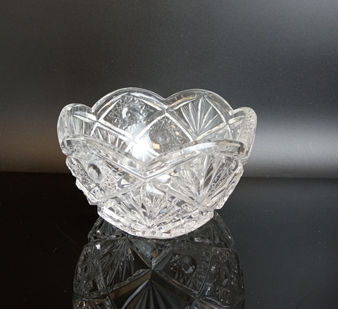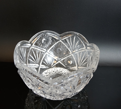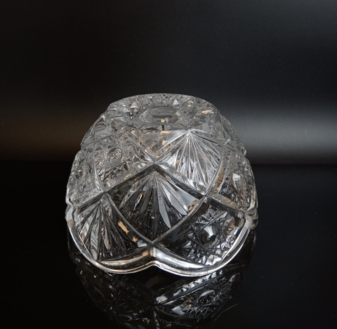 Хрустальная ваза салатница, конфетница с изящными геометрическими узорами, алмазная грань, винтаж времен СССР 1970-1990 гг. Высота - 9 см, диаметр - 15 см.