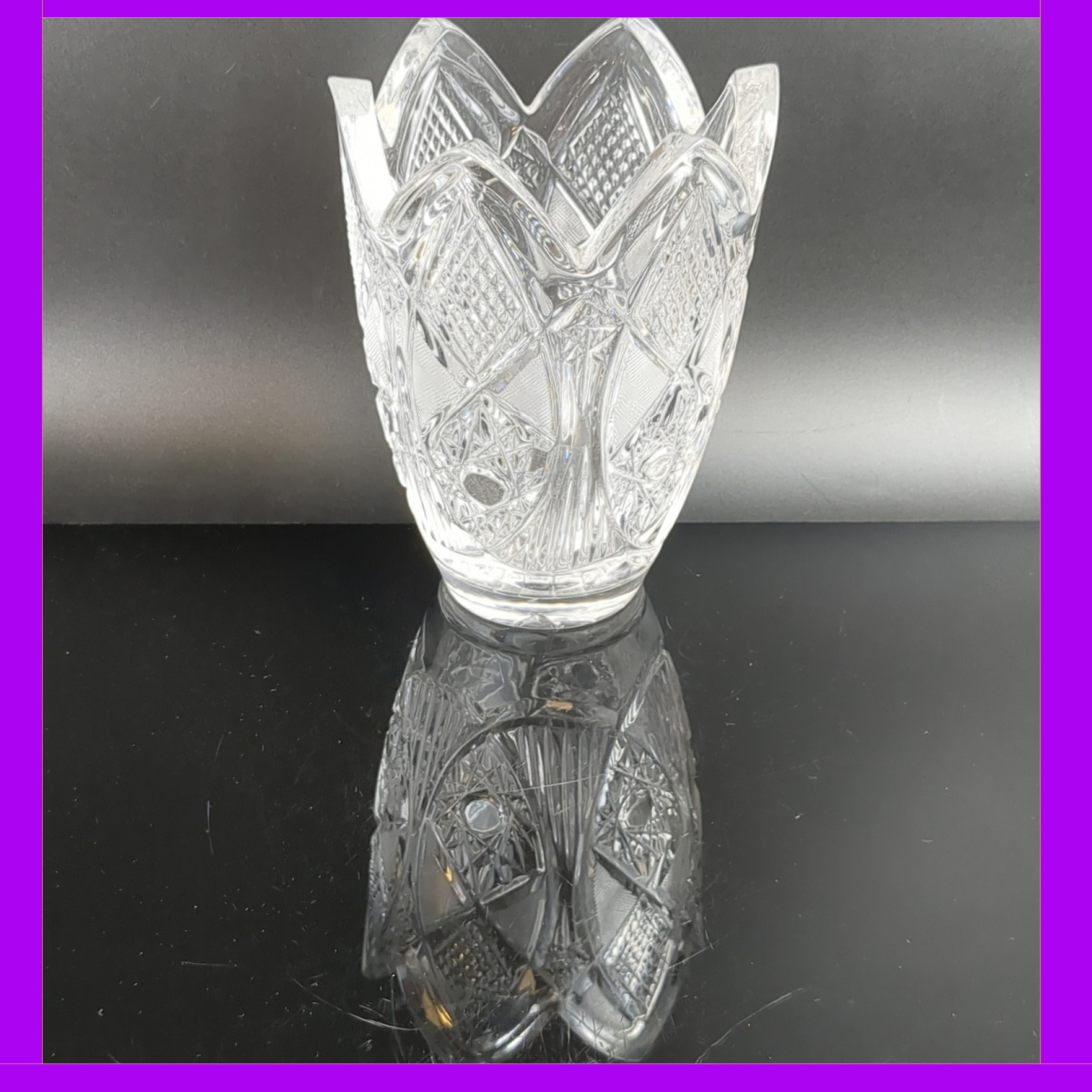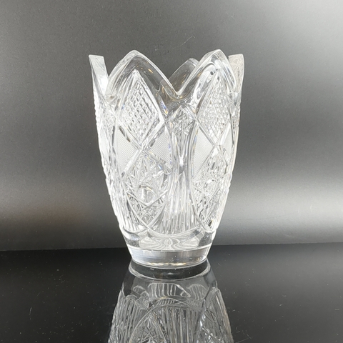 Хрустальная ваза "Тюльпан" СССР с рельефным декором, алмазная ручная огранка, 1960-1980 гг.