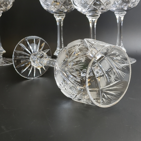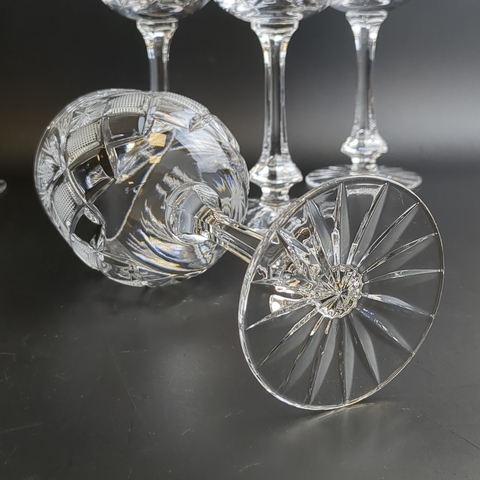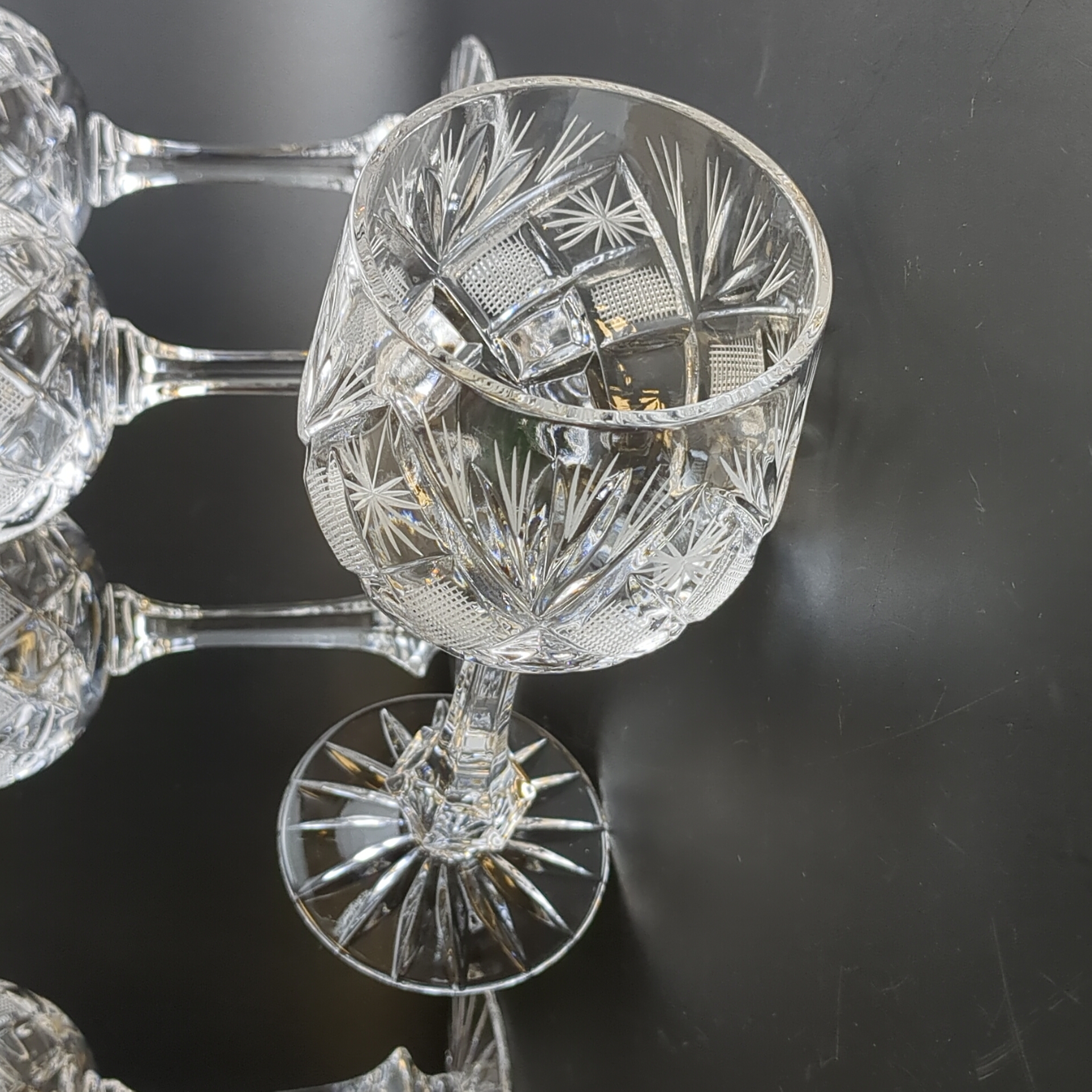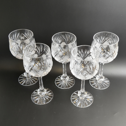 Антуражные хрустальное бокалы на ножке набор из 5 штук - винтажная роскошь в вашем доме. Высота - 19 см. Состояние на фото.