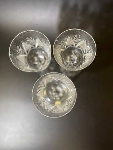 Хрустальные фужеры набор из 3х штук , ГДР, Германия Echt Bleikristall, ручная работа 1970е гг, есть сколы на краях бокалов, оригинальная наклейка