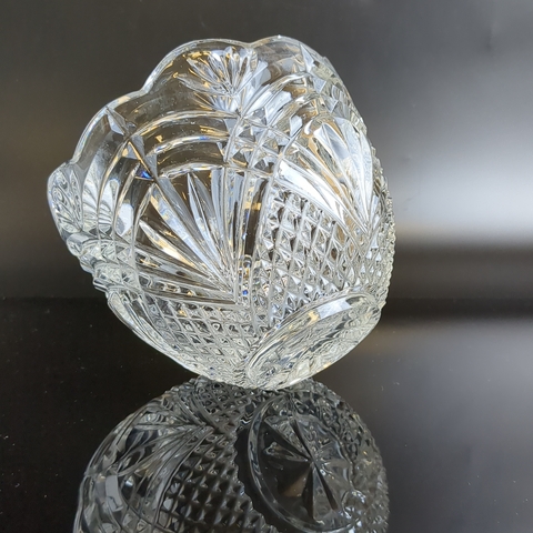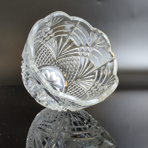 Хрустальный салатник алмазная грань, геометрический орнамент, винтаж СССР 1970-1990 гг. Состояние на фото