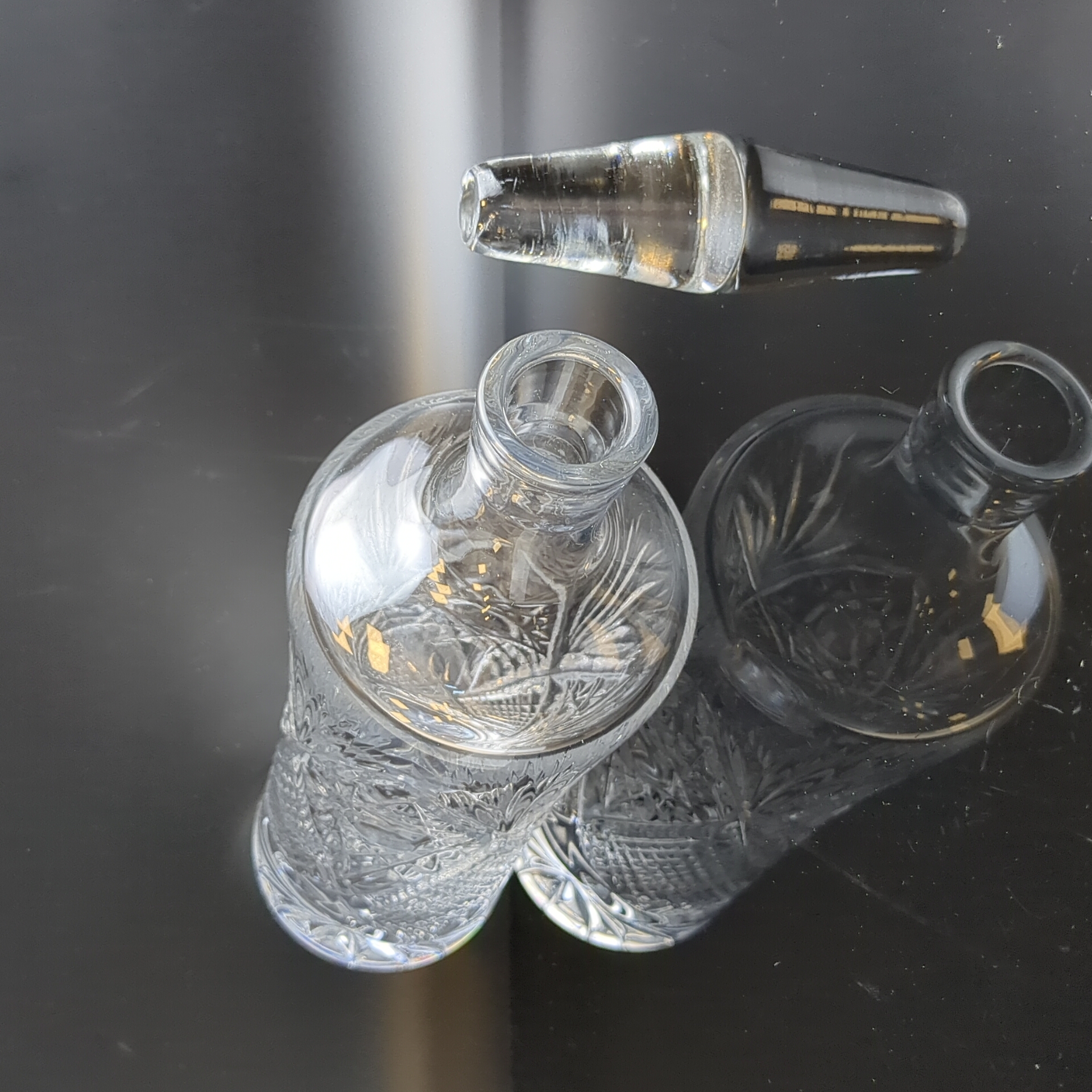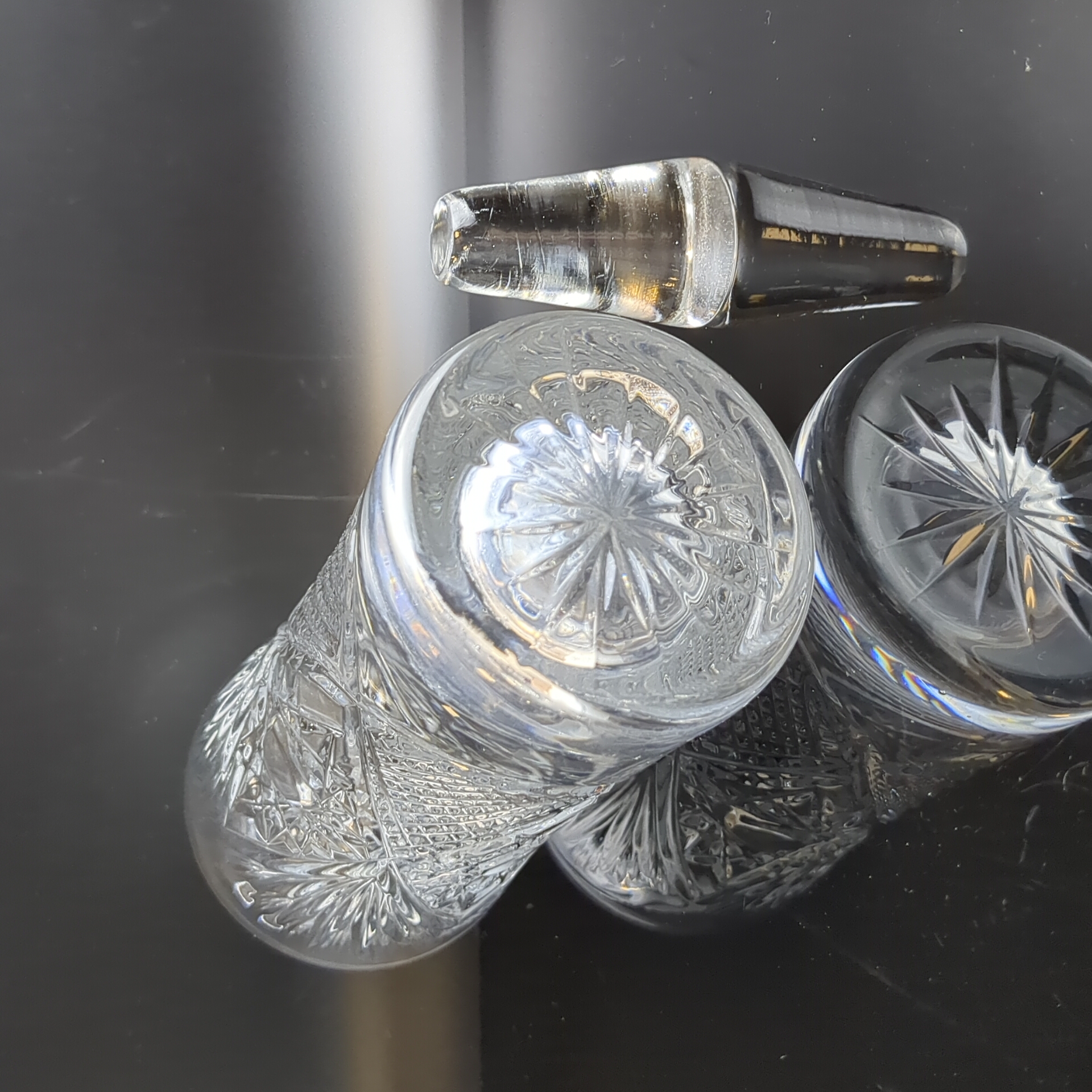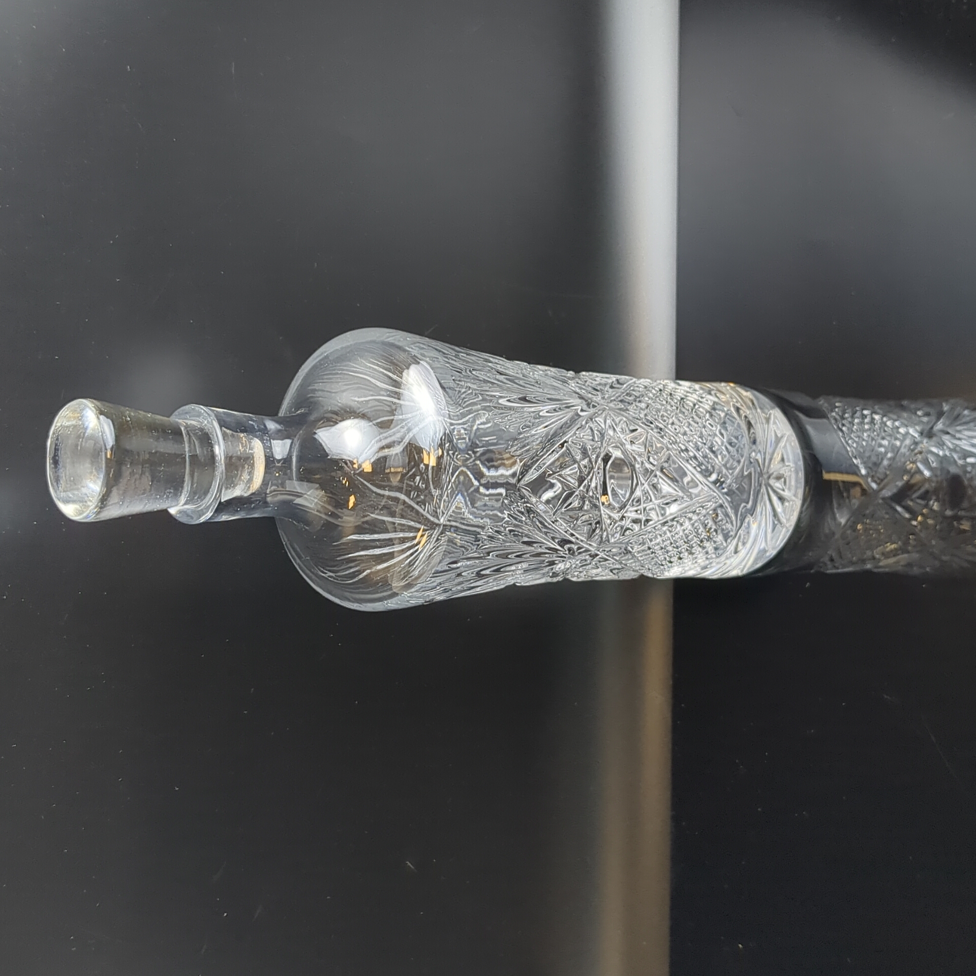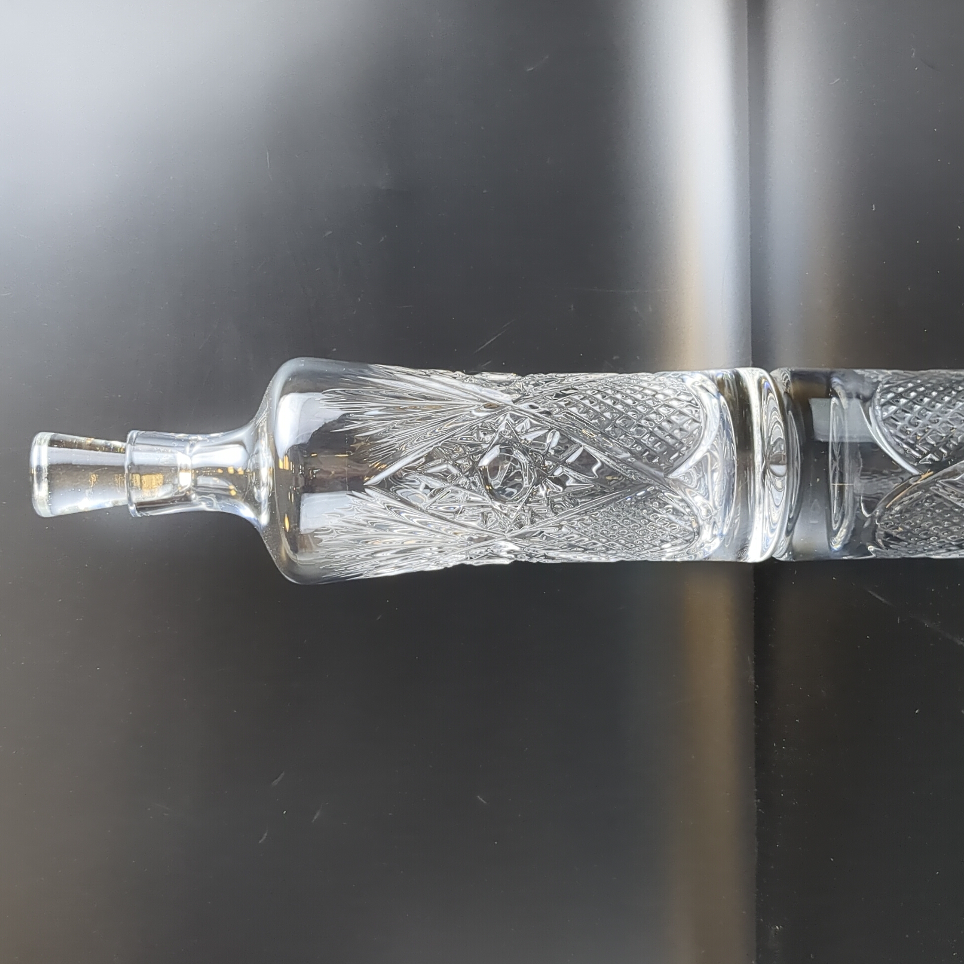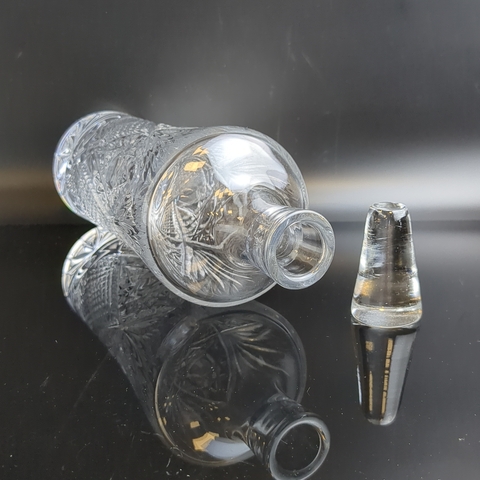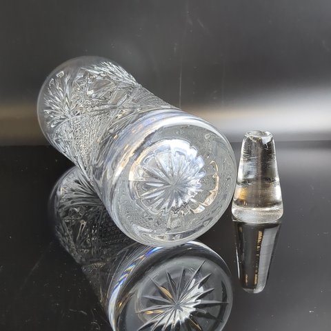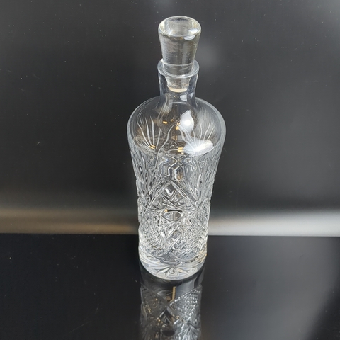 Хрустальный штоф, графин для напитков, алмазная грань, геометрический орнамент, высота-26 см, винтаж СССР 1970-1990 гг. Состояние на фото