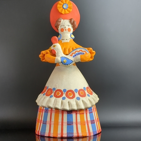 Игрушка Дымковская "Барыня с петухом", высота -33 см, автор Видякина А.Д , Киров/Вятка/Хлынов, глина, роспись ручная, СССР. Присутствуют следы использования- состояние на фото.