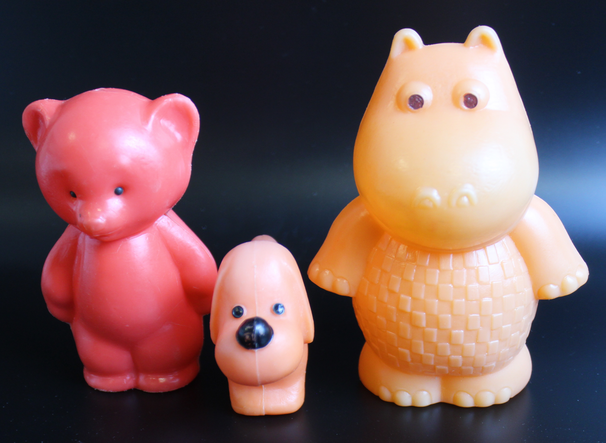 Игрушка СССР. Пластмасса. Бегемот, розовый мишка, собачка. 3 шт. XF