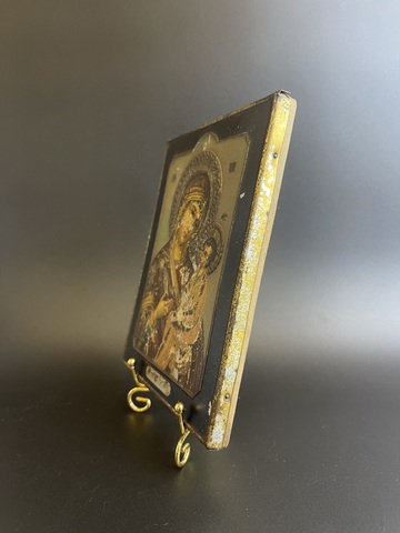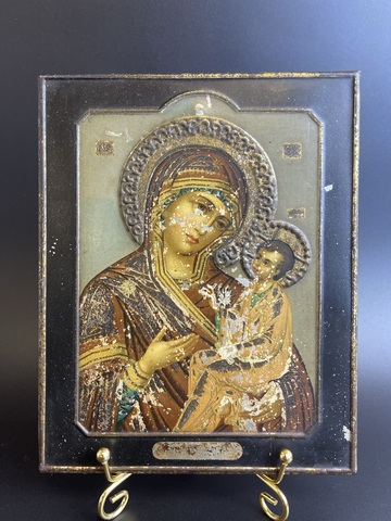 Икона 19 век Пресвятая Богородица Божья Матерь Богоматерь Тихвинская. Хромолитография на жести. 1897 год Москва. Российская Империя.