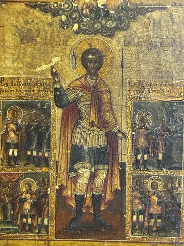 Икона 19 век Святой Иоанн Воин с клеймами жития. дерево, темпера, Российская Империя. Размеры 17,5 х 14 х 1,5 см.