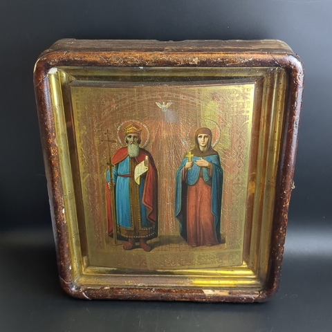 Старинная икона «Святой равноапостольный князь Владимир и святая Маргарита (Марина Антиохийская)» в киоте