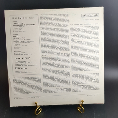 И.С. Бах. Концерт № 2. Соната. Sinfonia. Гидон Кремер скрипка. Виниловая пластинка 12 дюймов. Мелодия СССР.