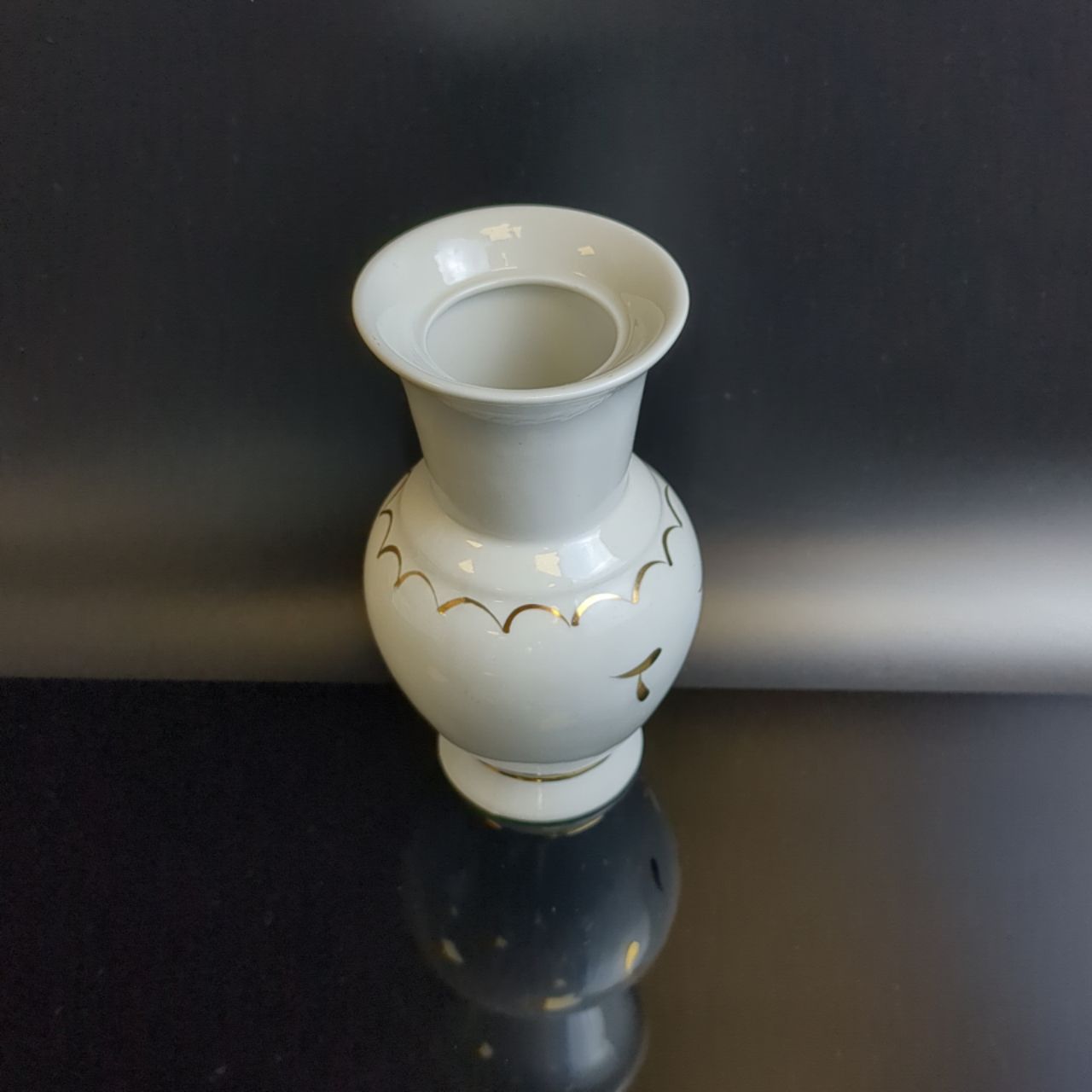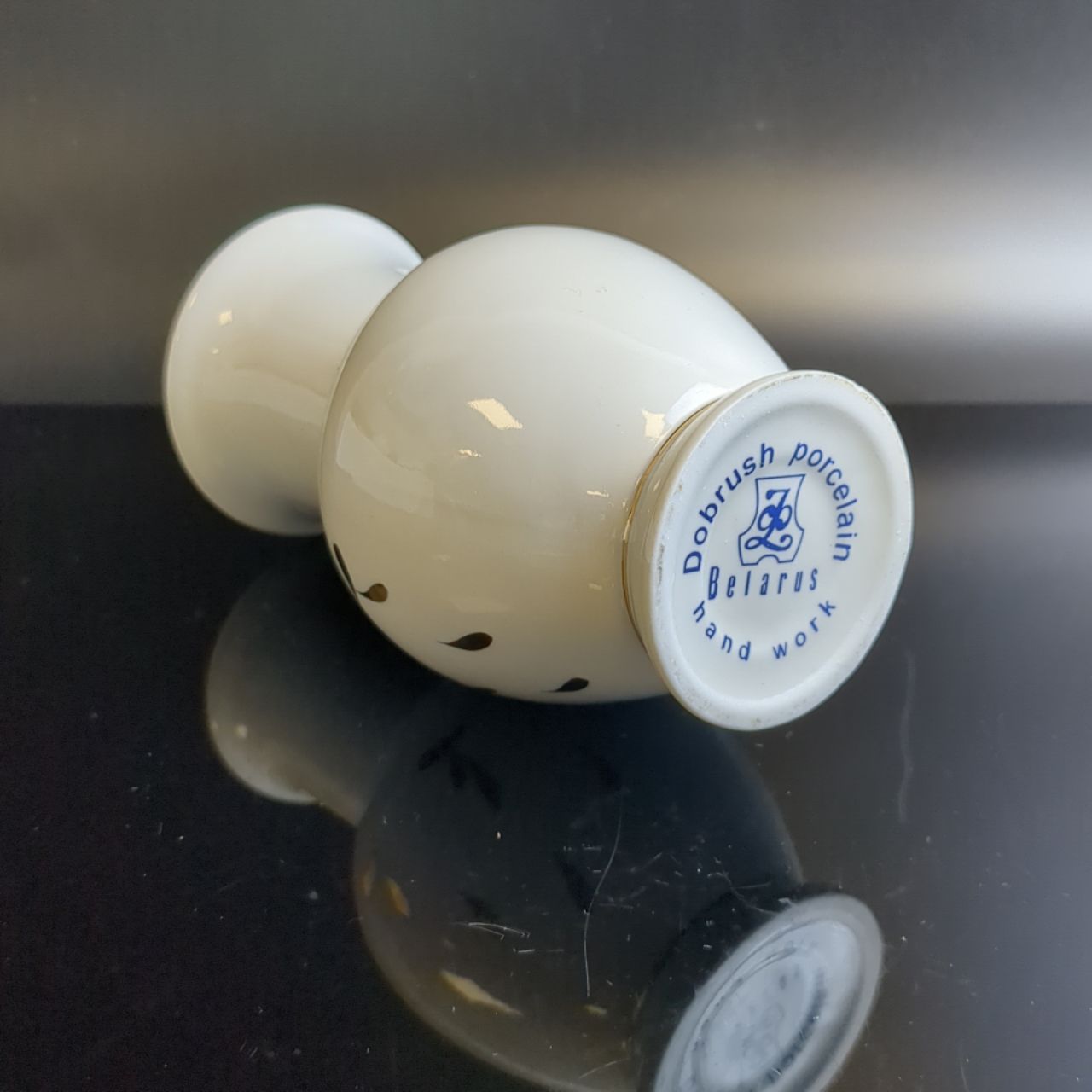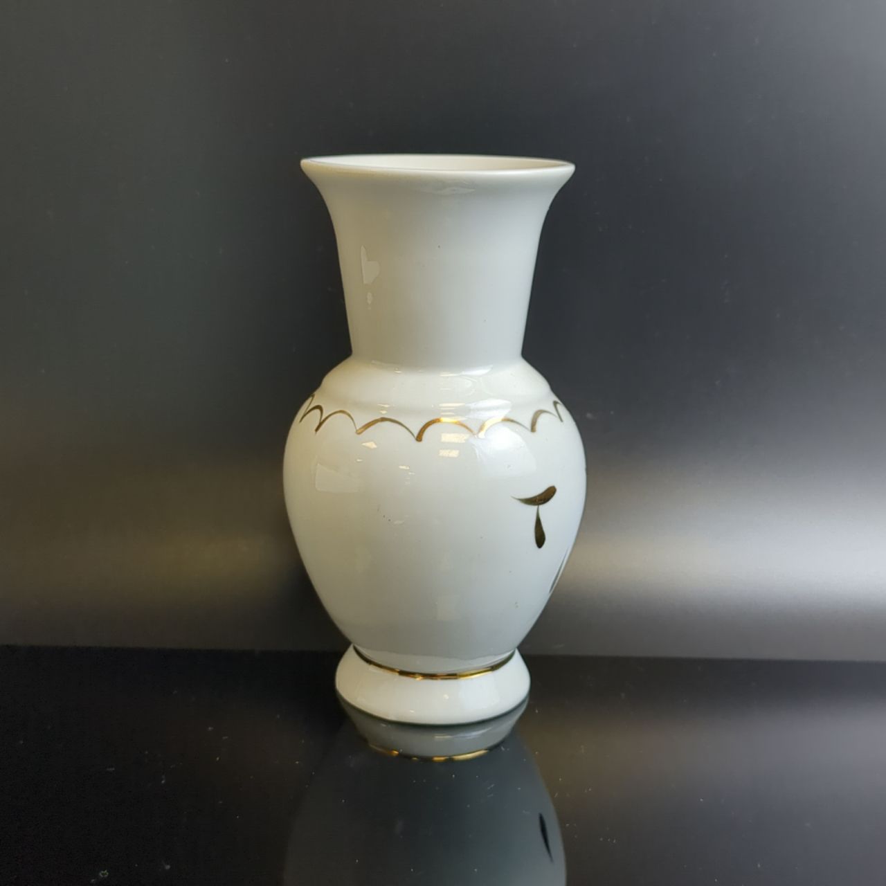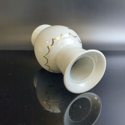 Изящная ваза для цветов из белого фарфора с золоченым декором, ручная работа, Dobrush porcelain Беларусь в винтажом стиле. Высота - 13.5 см, диаметр верха - 6.5 см. Состояние на фото.