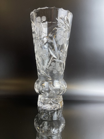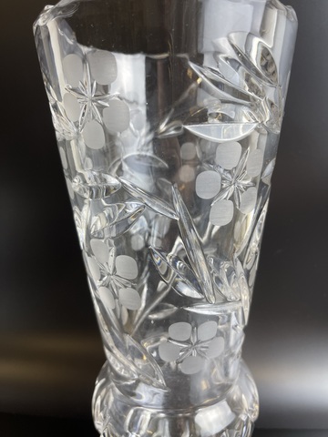Изящная ваза хрустальная Германия, винтажная, матовый узор, алмазная грань, 1970х годов. Высота- 26.5 см, вес- 1.8 кг. Сервантное хранение, состояние на фото