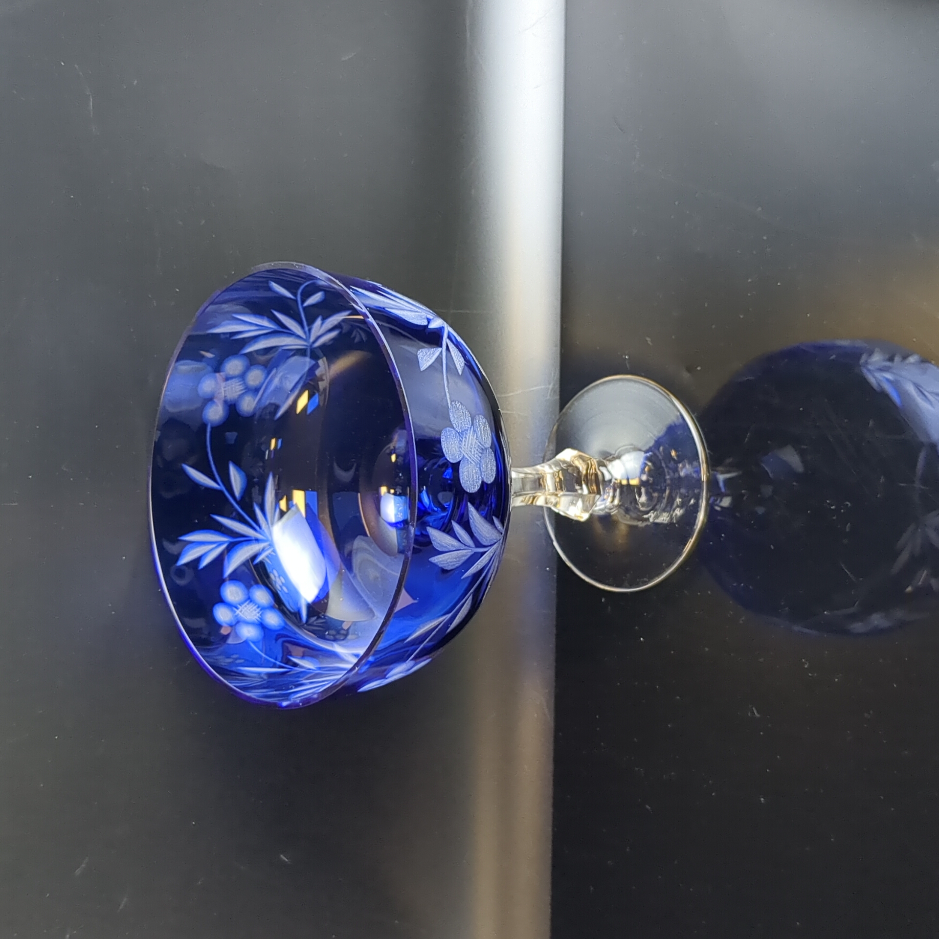 Изящная ваза конфетница на ножке, двухслойное цветное стекло, алмазная резка, шикарный узор, высота - 15.6 см, винтаж СССР 1970-1990 гг. Диаметр - 13 см. Состояние на фото