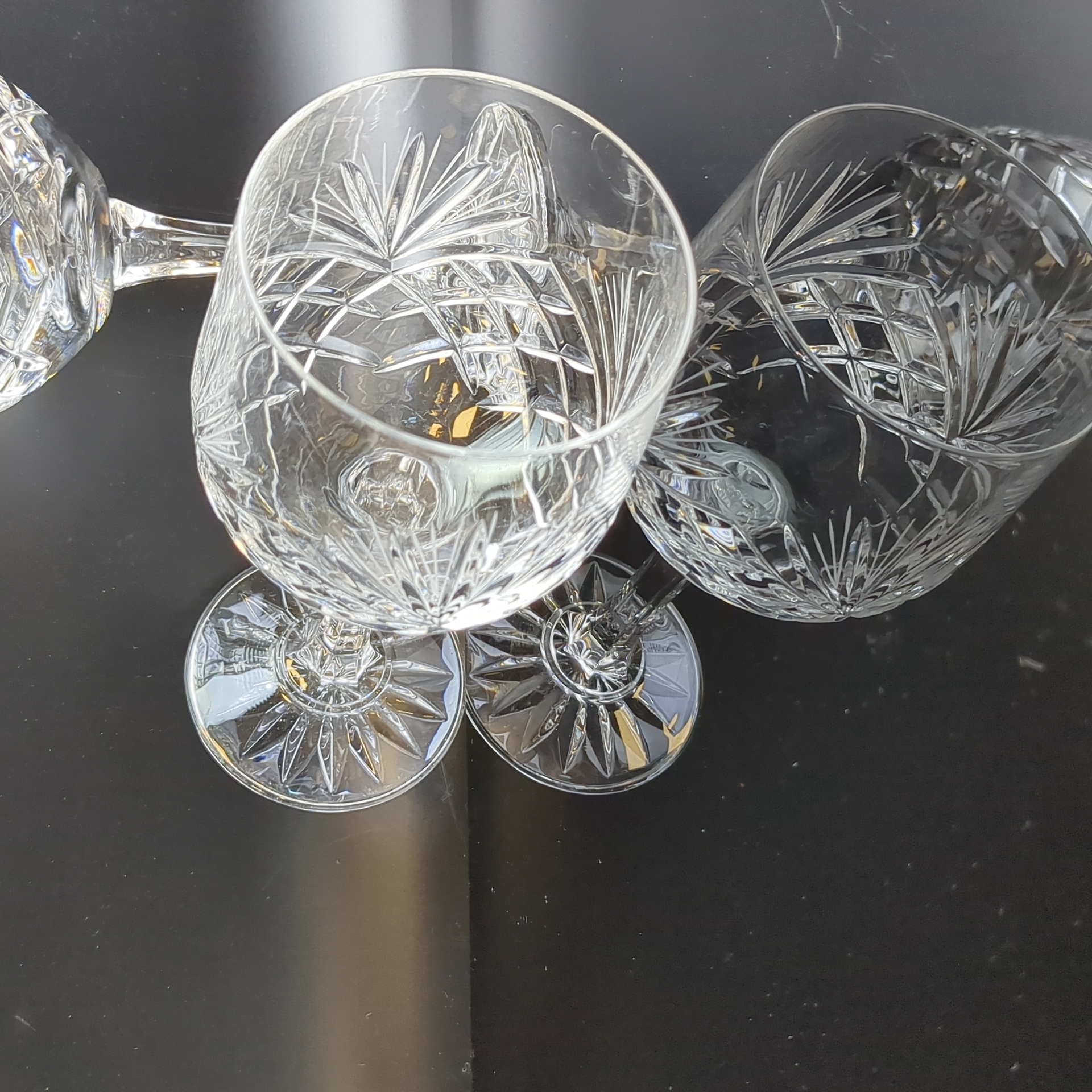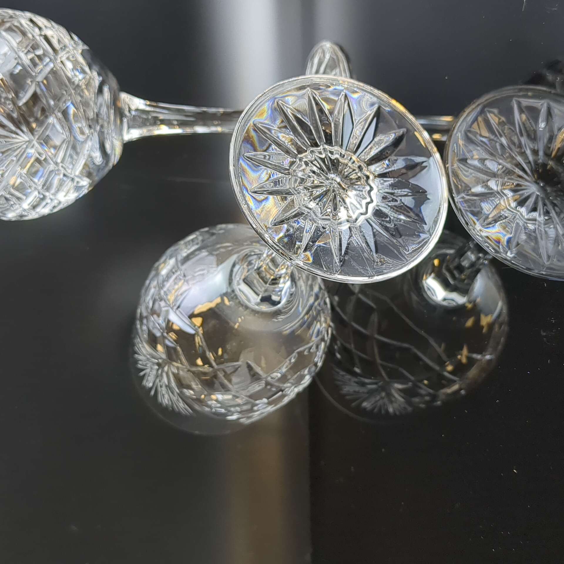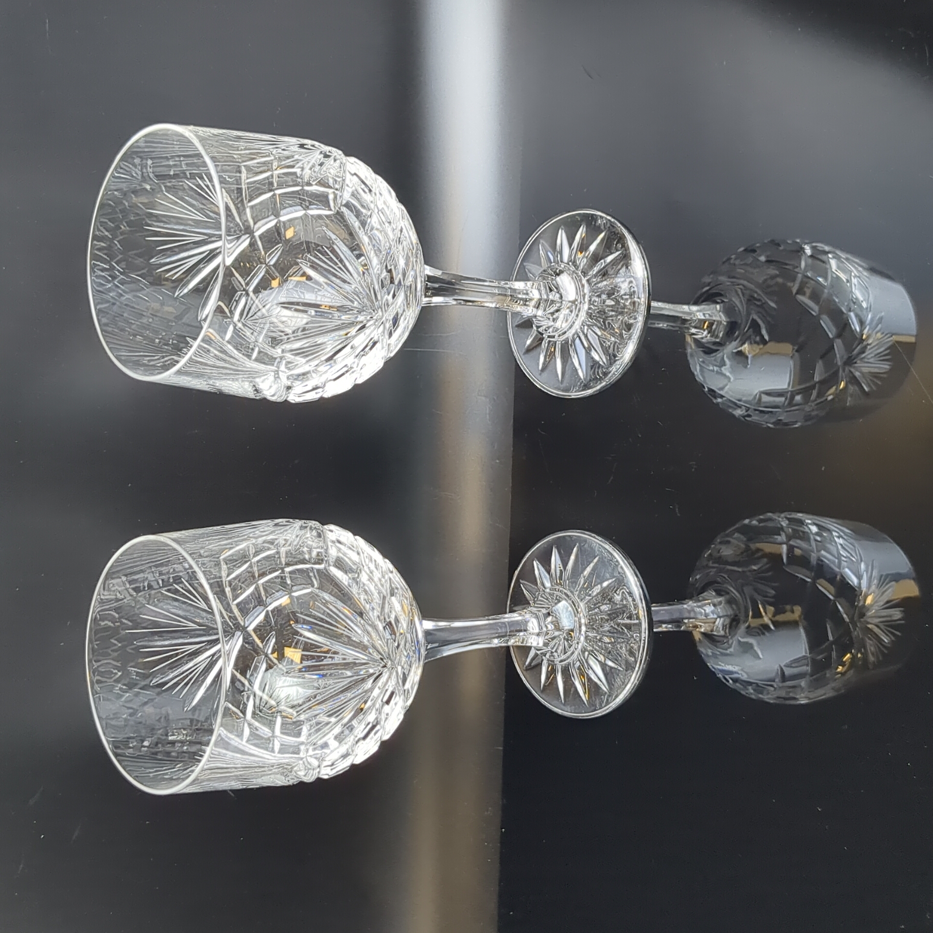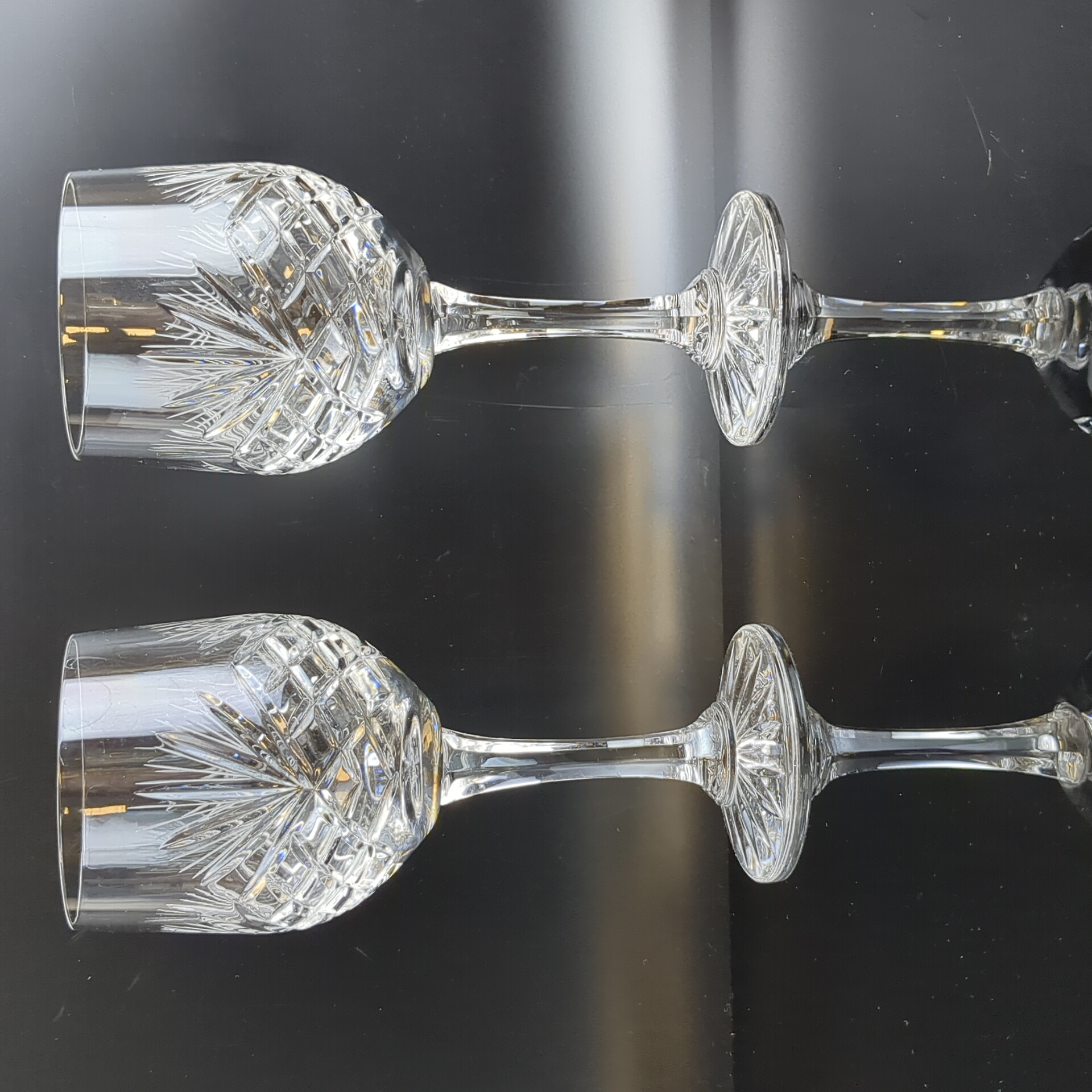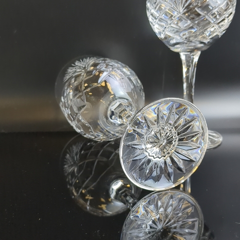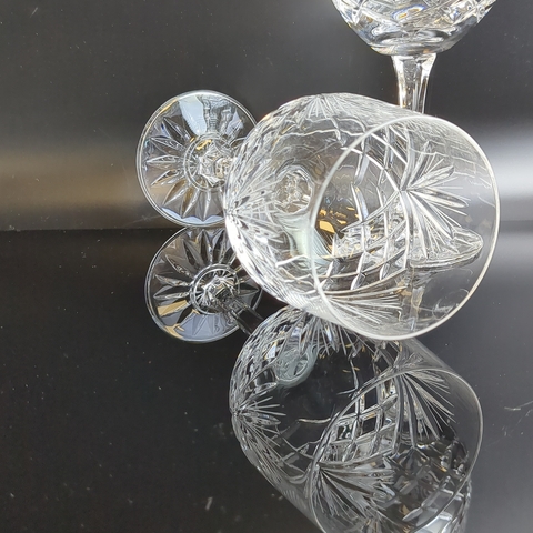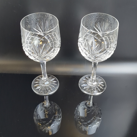 Изящные бокалы на ножках на 2 персоны хрустальные, алмазная грань, ручная резка, высота-18 см, винтаж СССР 1970-1990 гг. Состояние на фото