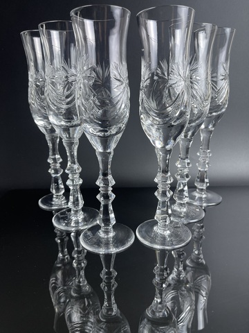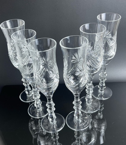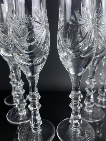 Изящные фужеры для шампанского набор из 6 штук, хрусталь, Гусь Хрустальный ,Гусевской хрустальный завод, алмазная грань, высота - 21 см, винтажные. Сервантное хранение - состояние на фото. Идеально на подарок или в личную коллекцию
