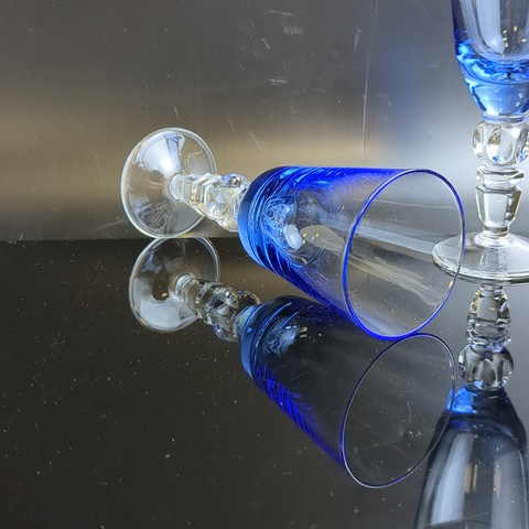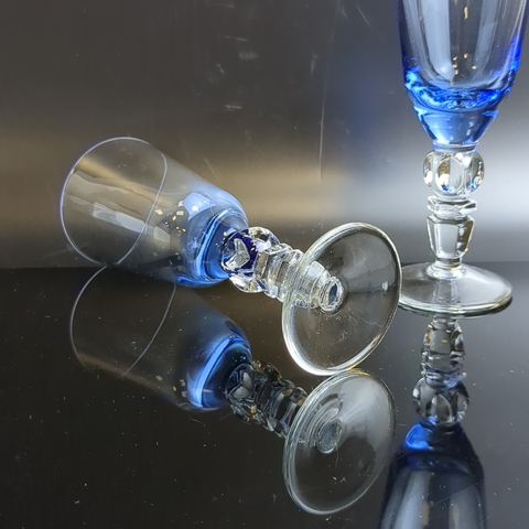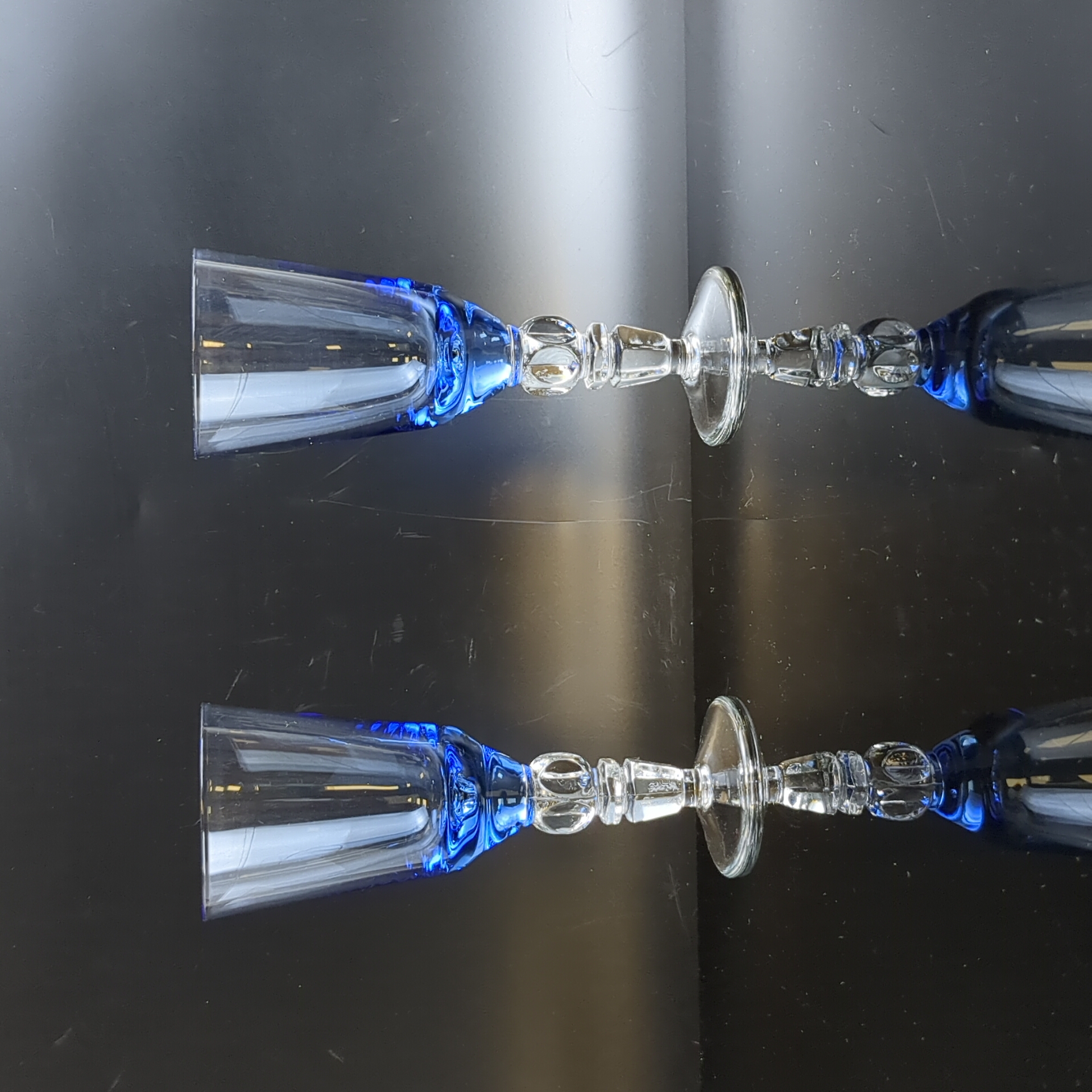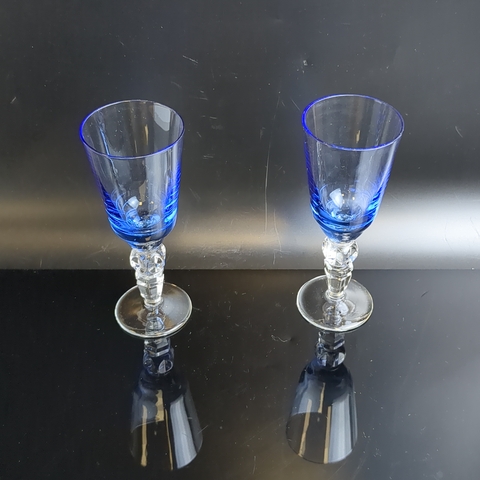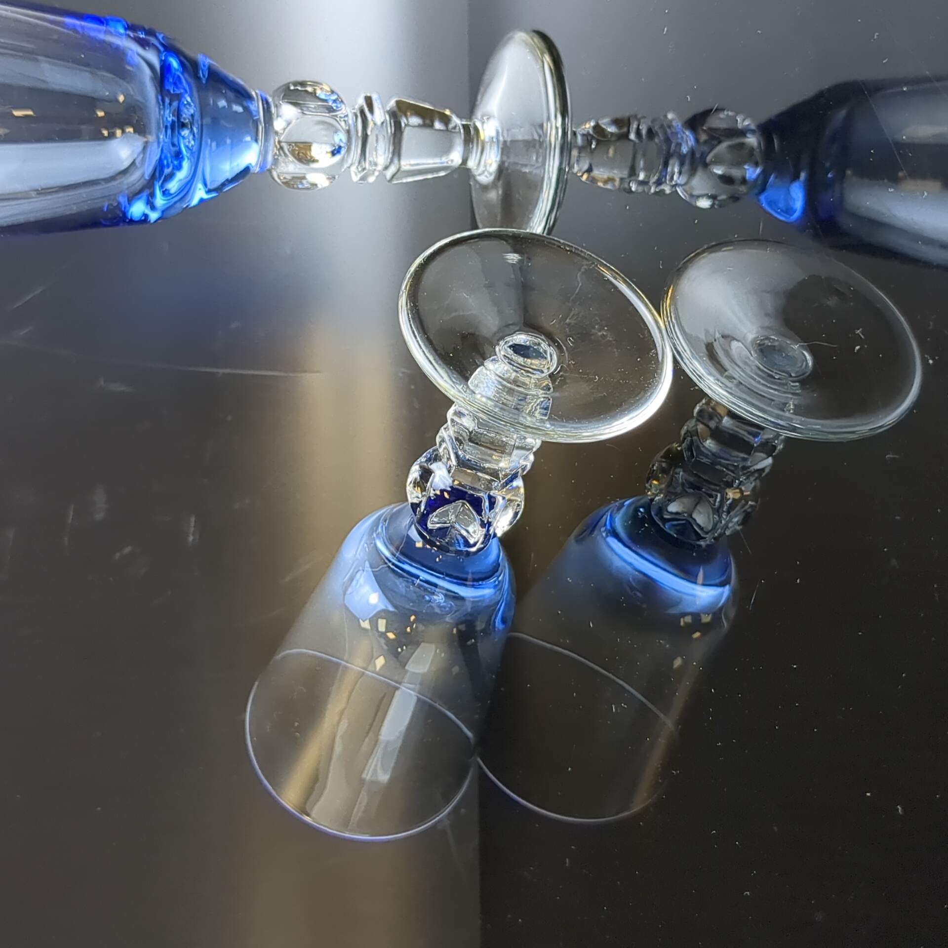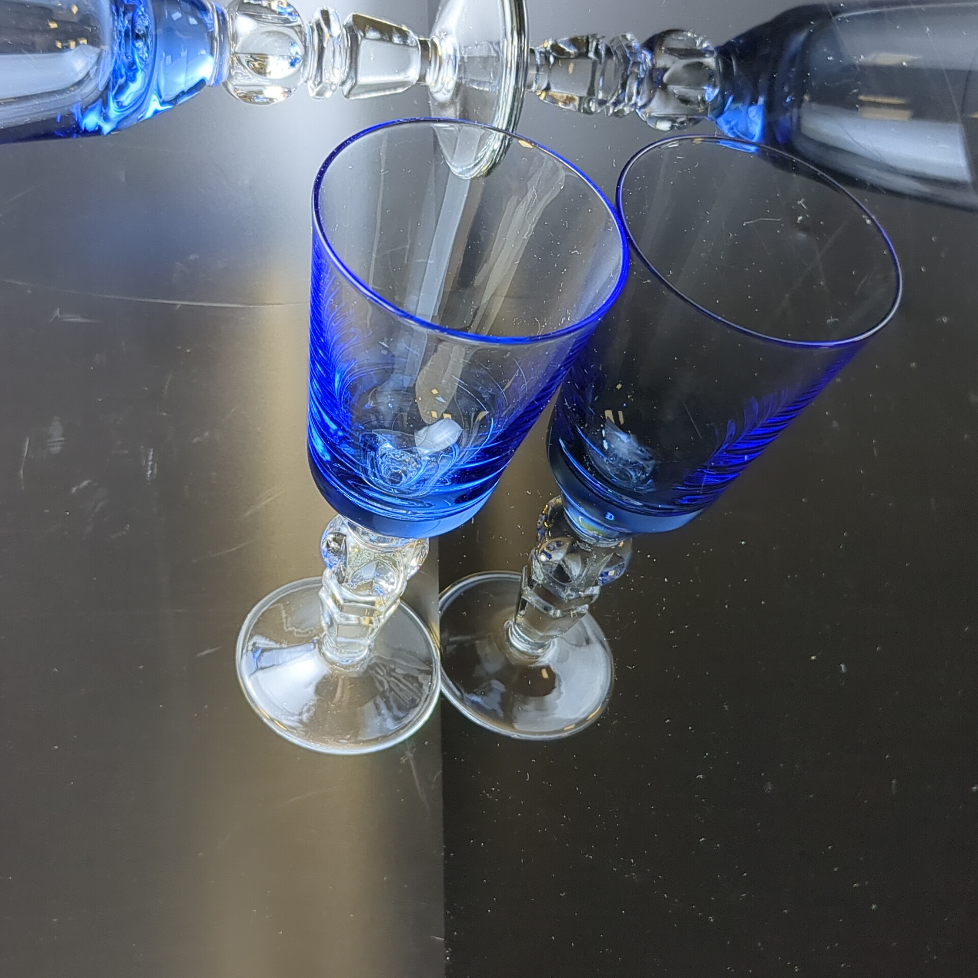 Изящные фужеры набор из 2х штук, цветное синее стекло, изящная ножка, высота -14 см, винтаж СССР 1970-1990 гг. Состояние и комплектация на фото
