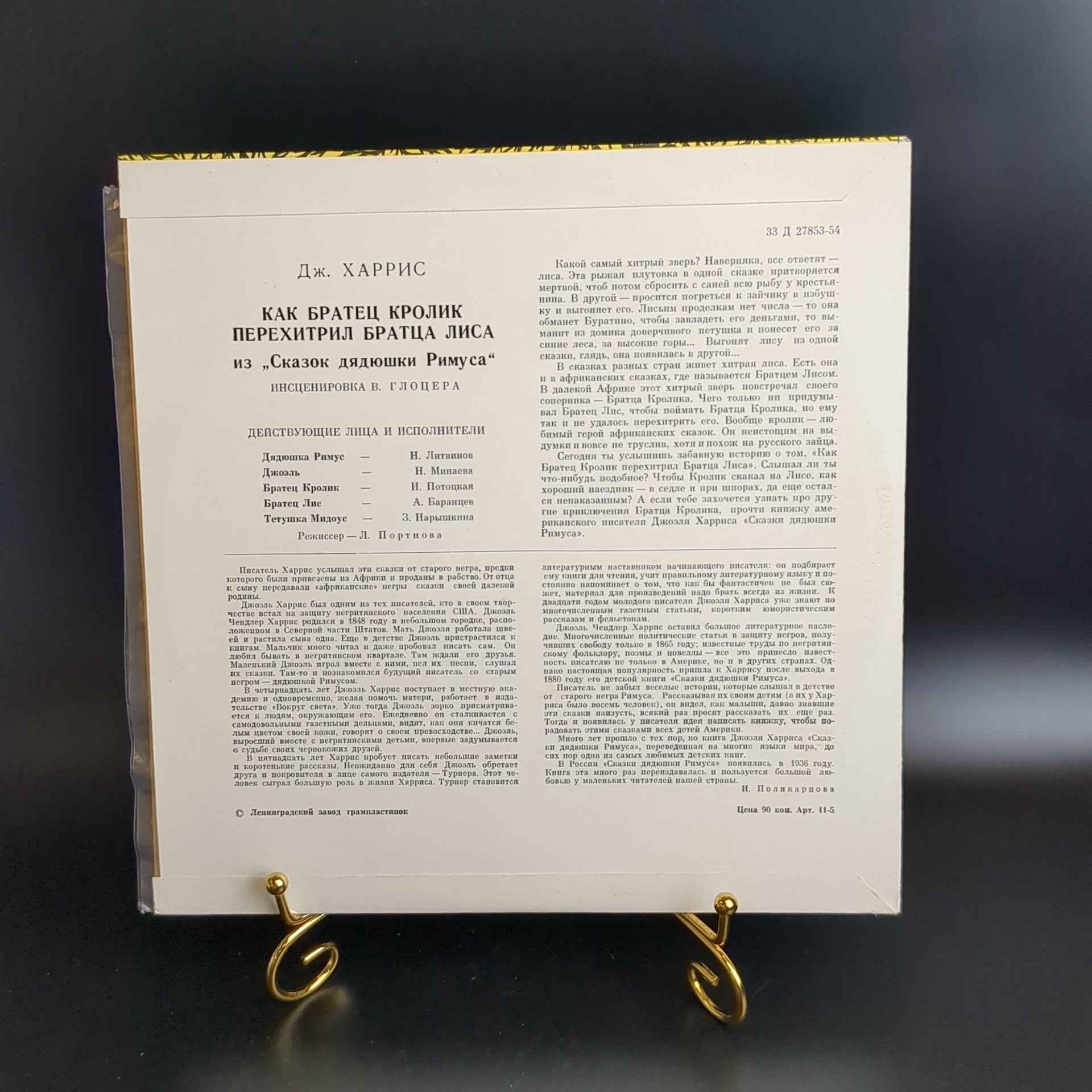 Как братец кролик перехитрил братца лиса - детская сказка. Виниловая пластинка 10 дюймов. Мелодия СССР.