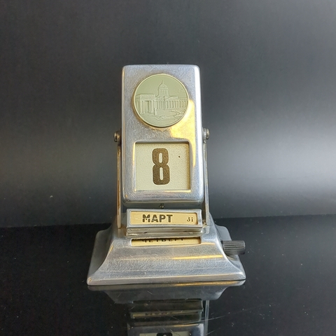 Календарь перекидной (настольный) "Ленинград" с изображением Казанского собора и Ростральных колонн, металл, бумага, полимер, Ленинградский монетный двор (ЛМД), СССР, 1950-1960 гг. Рабочий. Состояние на фото
