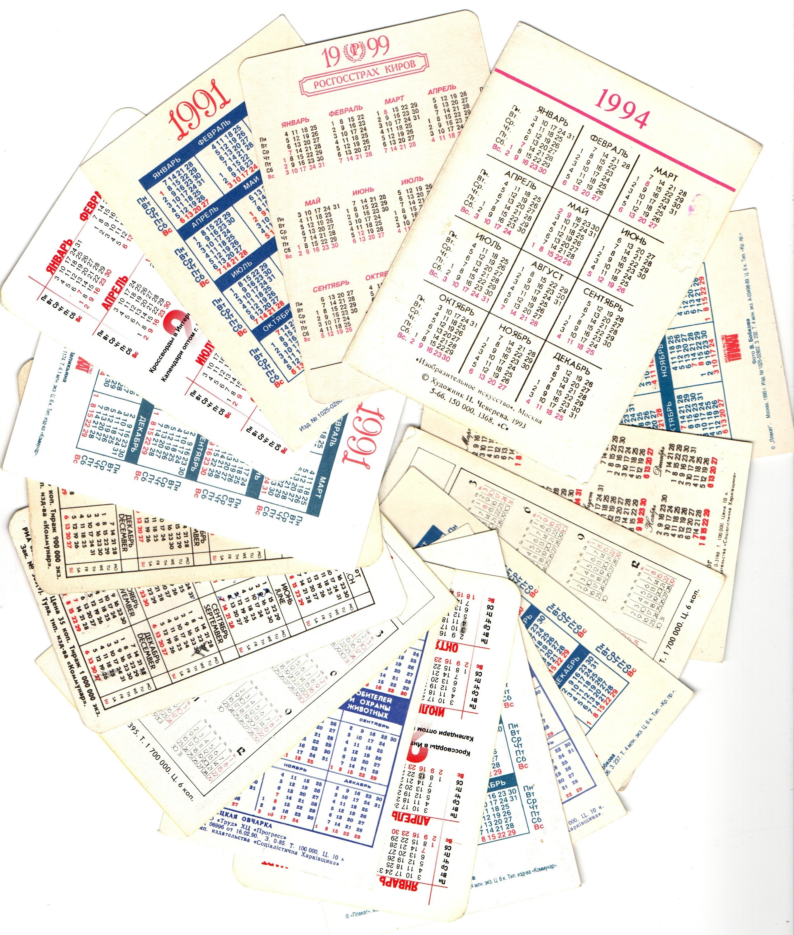 Календарики карманные 15 штук - Собаки - СССР, Россия молодая