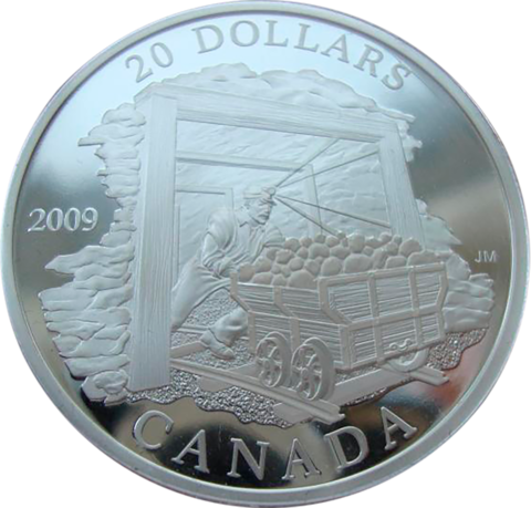 Канада 20 долларов 2009 Добыча угля Шахта Шахтер Серебро