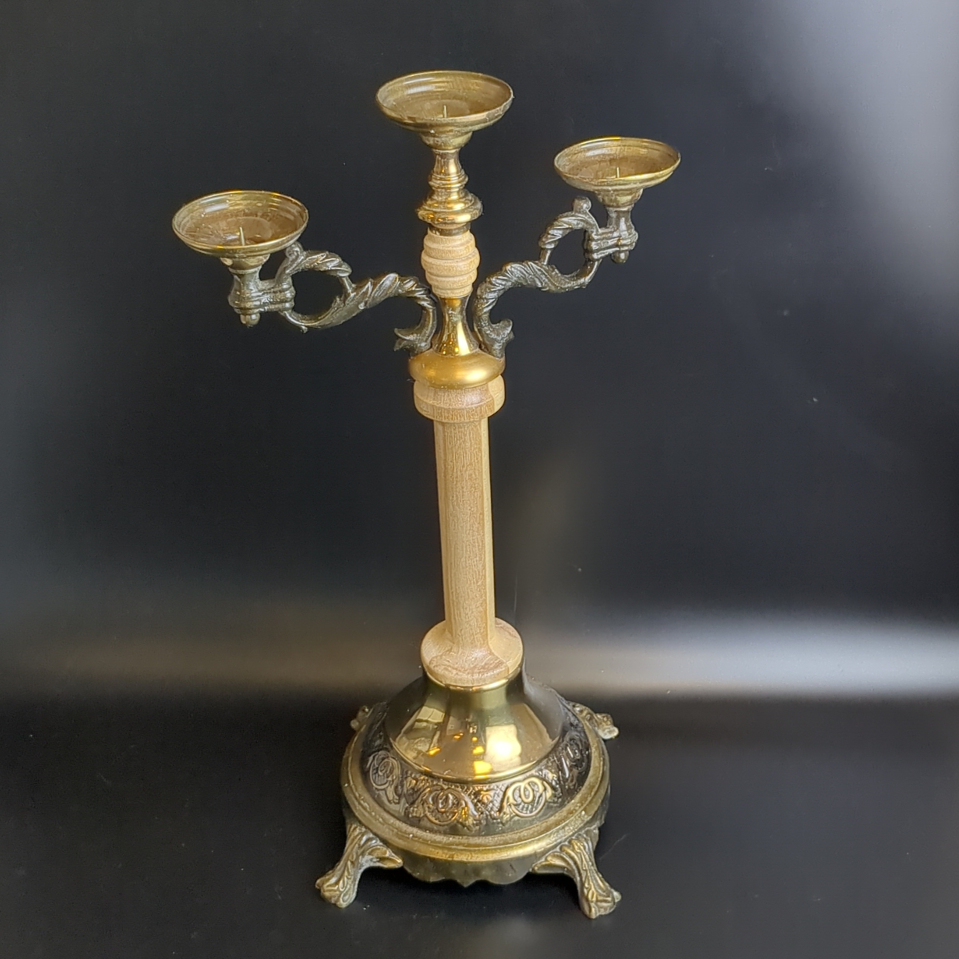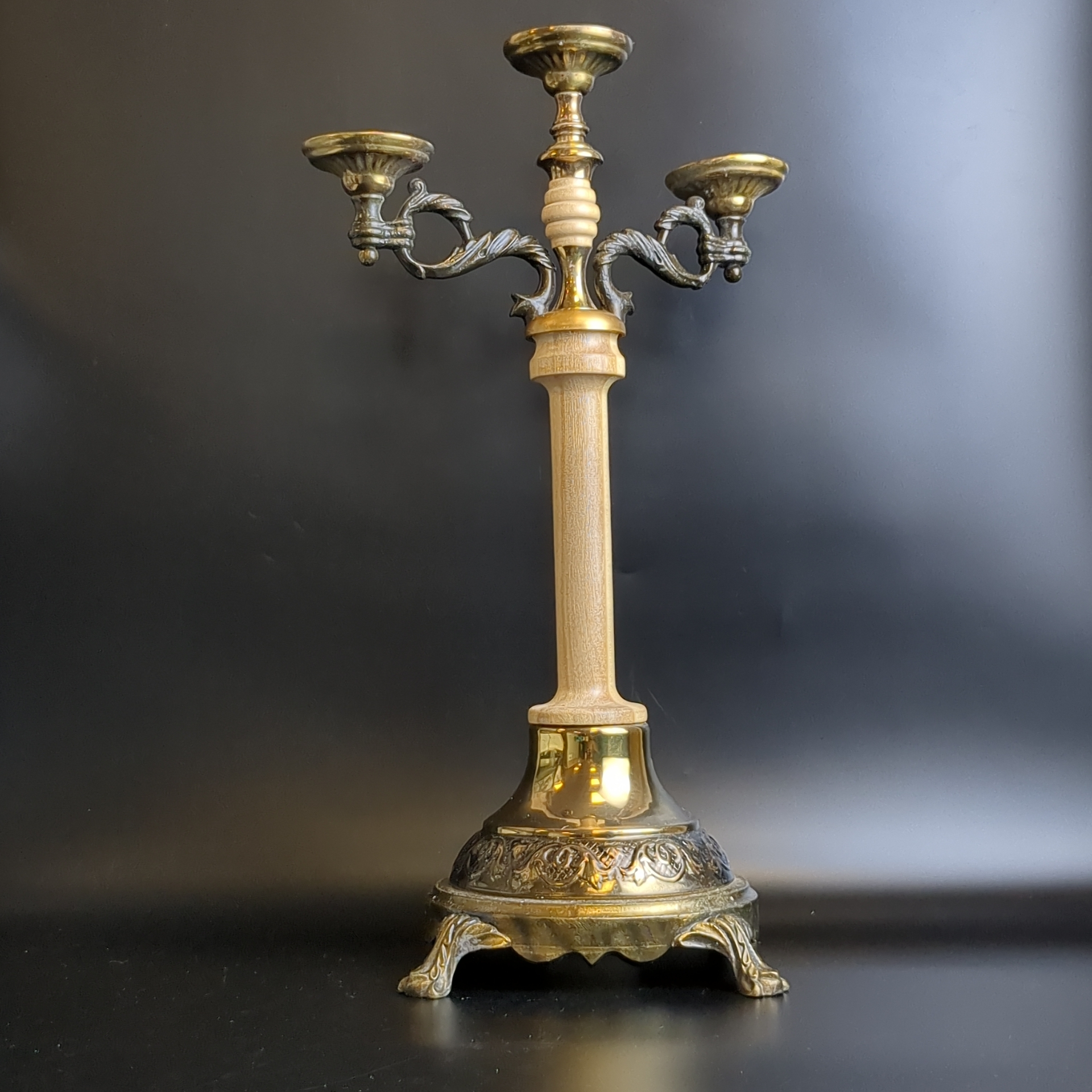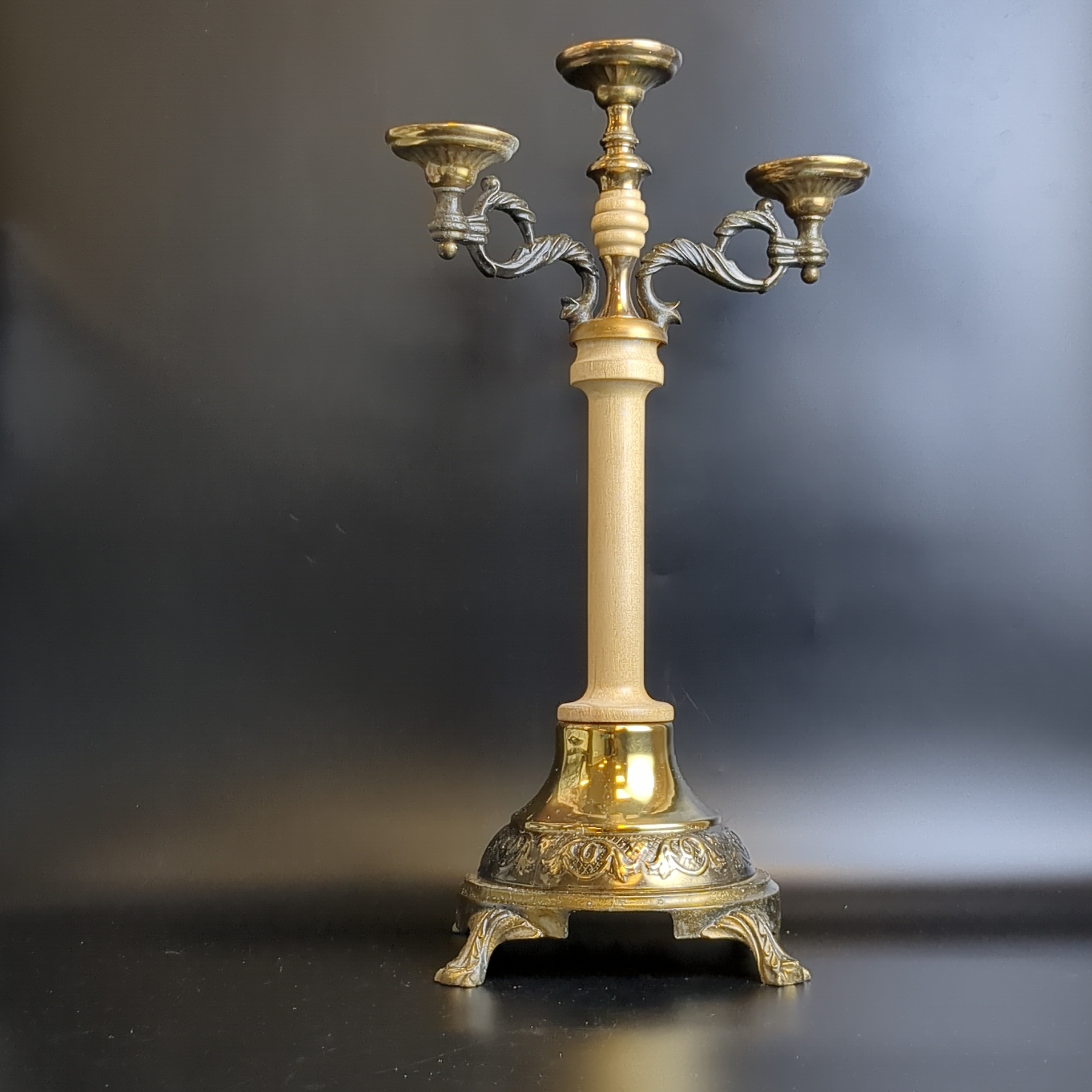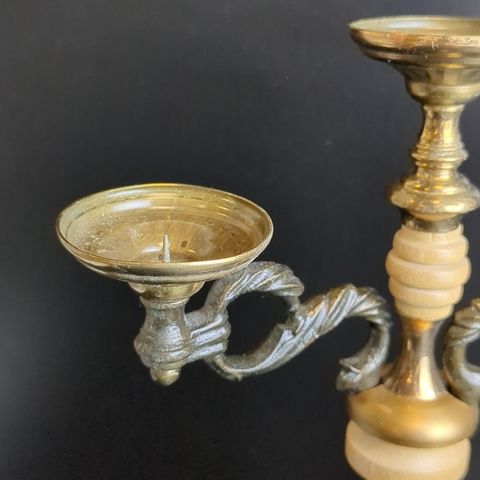 Канделябр подсвечник на 3 свечи. Металл, дерево. Высота 38 см. СССР