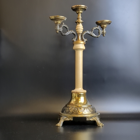 Шикарный канделябр подсвечник на 3 свечи. Старинный. Высота 38 см. Антикварный тяжелый канделябр на 3 свечи, высотой 38 см, шириной 22 см, с удобным прихватом для руки, если необходимо передвижение. Этот замечательный подсвечник добавит изюминку в ваш интерьер, как домой, на дачу, так и в офис.