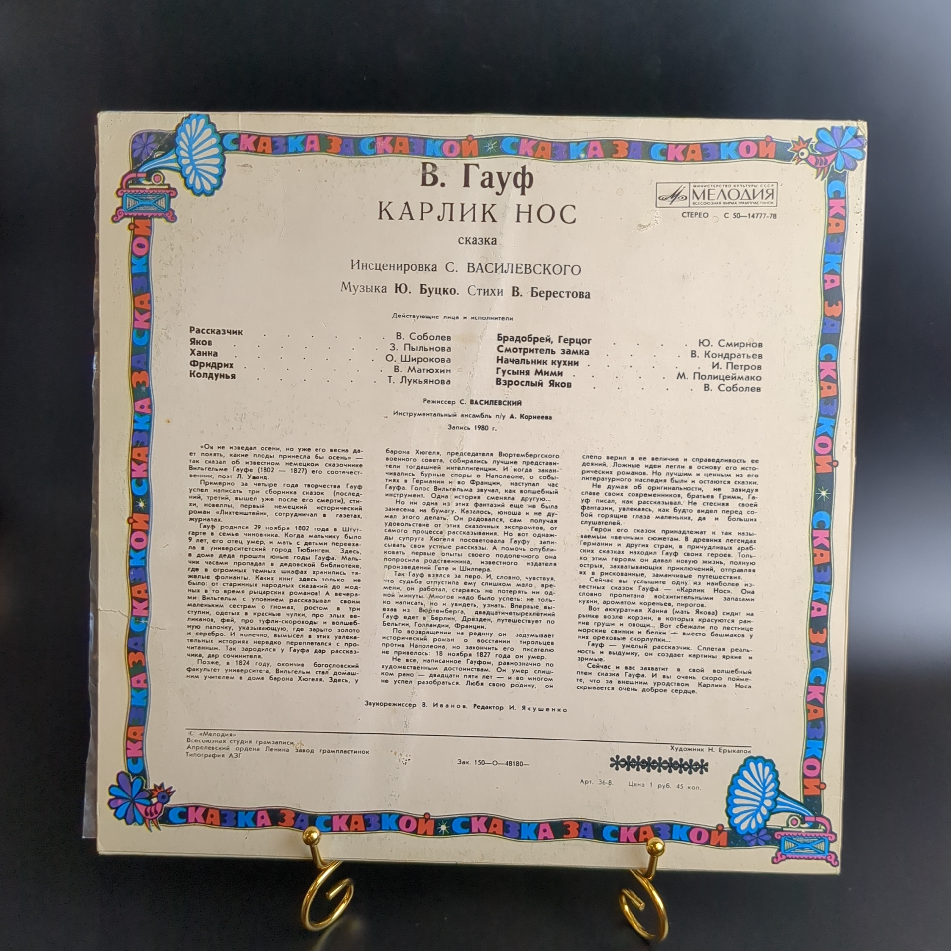 Карлик Нос - сказка В.Гауфа, инсценировка А.Корнеев. С.Василевский. Ю.Буцко. Виниловая пластинка 12 дюймов. 1980 год